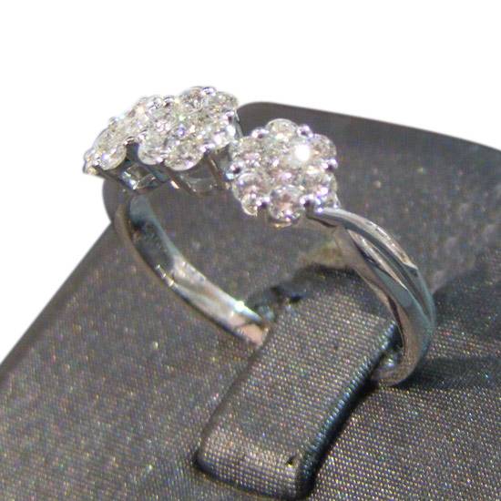 The featured jewellery is a 18K white gold and diamond ring for ladies and women. Three clusters of round brilliant cut diamonds are set on top as the main feature, giving the ring a simple and refined style which is suitable for wearing everyday.