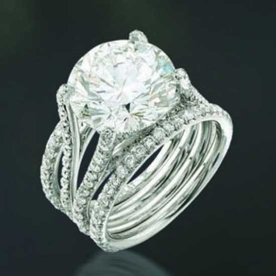 The 18K white gold ring showcase an exotic cut-out design with delicate details. The diamond in the center simply freezes your sight with its dazzling brilliance. Add a glamor touch to your evening look with this fabulous diamond ring.