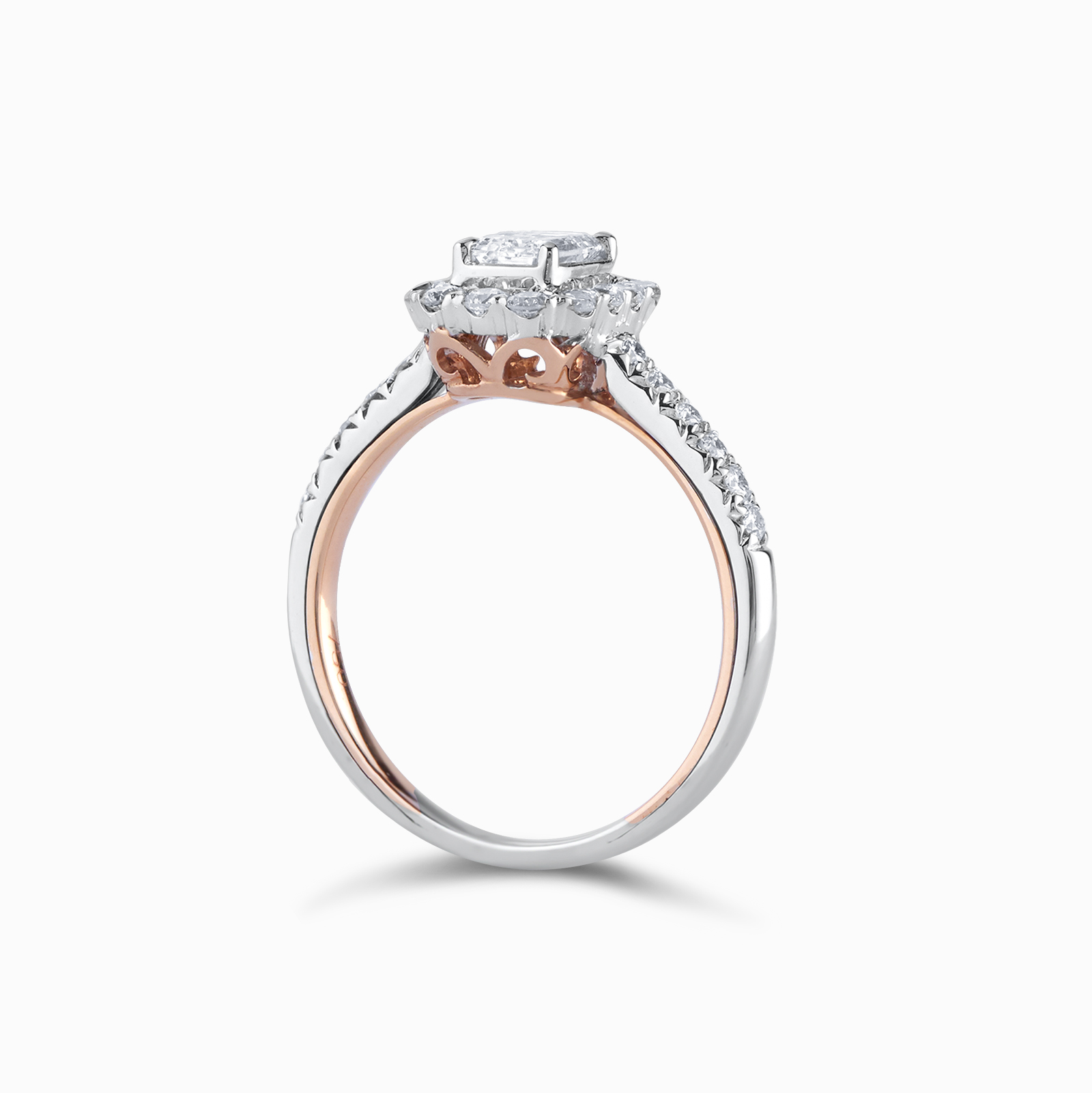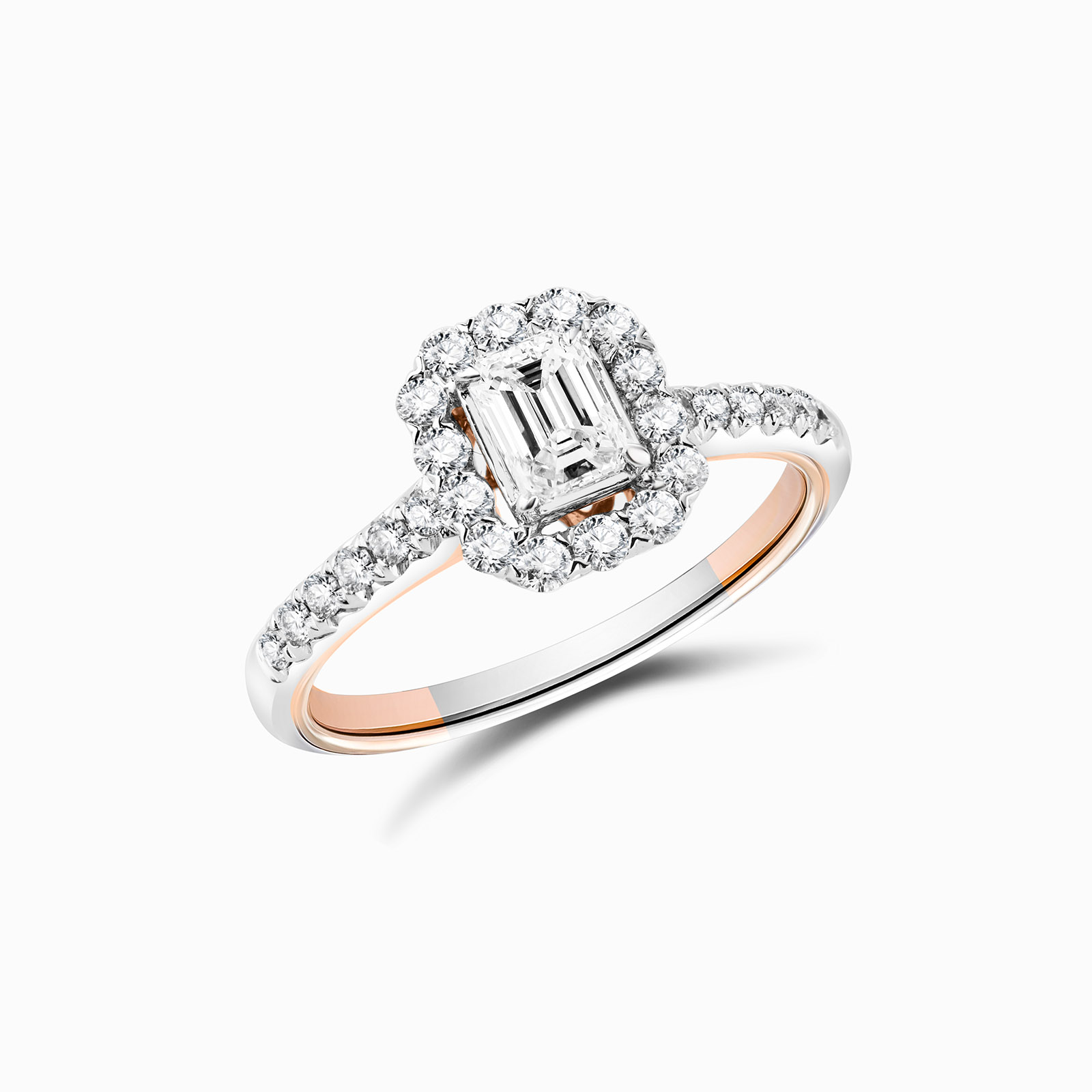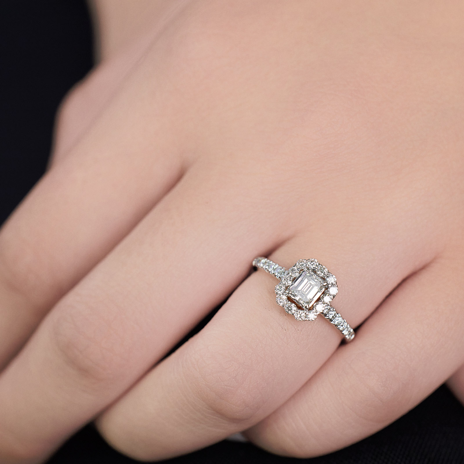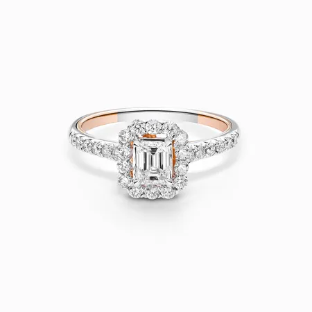 Mirage collection is using Round Cut and Baguette Diamonds to create a perfect Emerald diamond shape feeling to an illusion setting without unleashing the fire and sparkle of each stones.