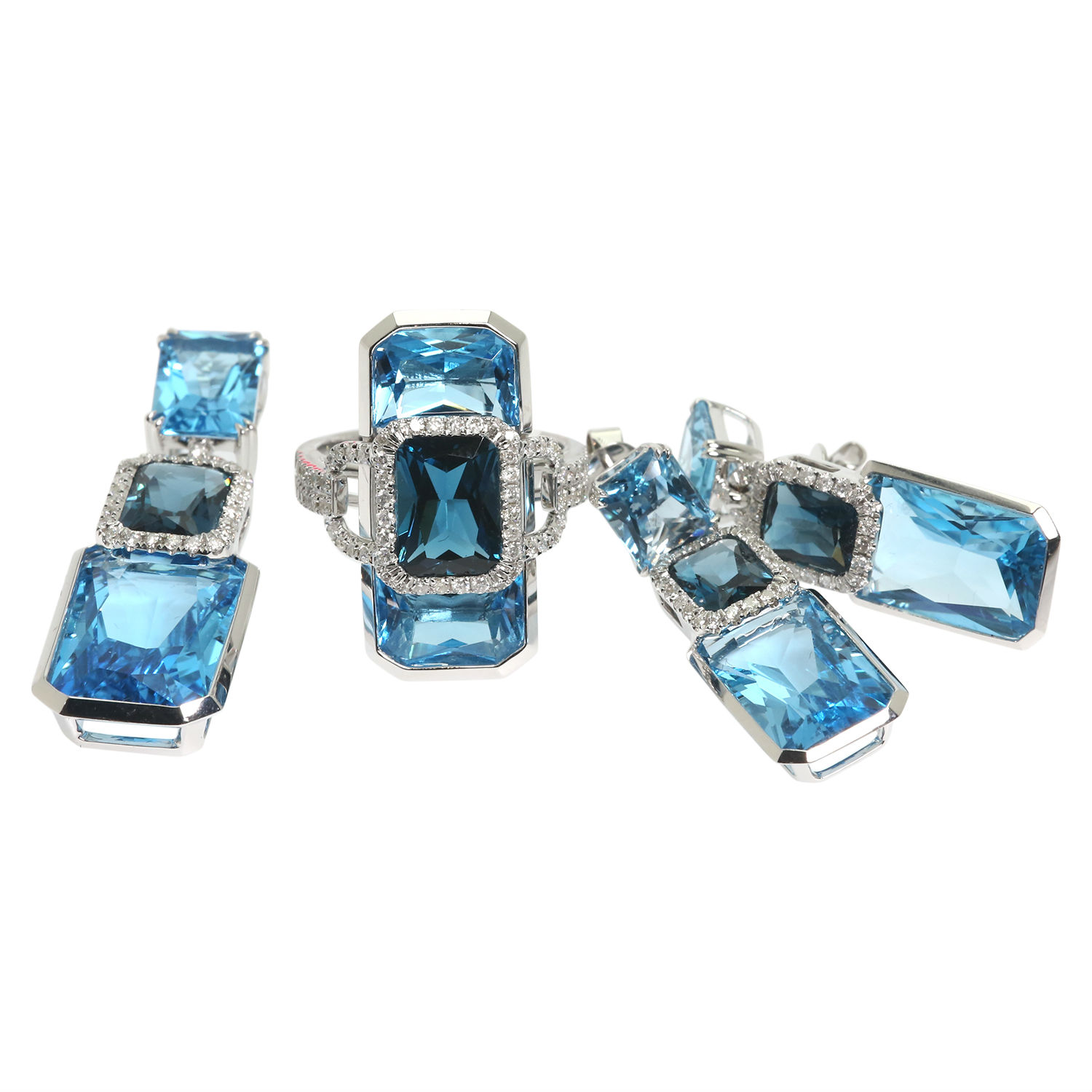 • 18 karat gold with diamonds, blue topaz and London blue topaz half set