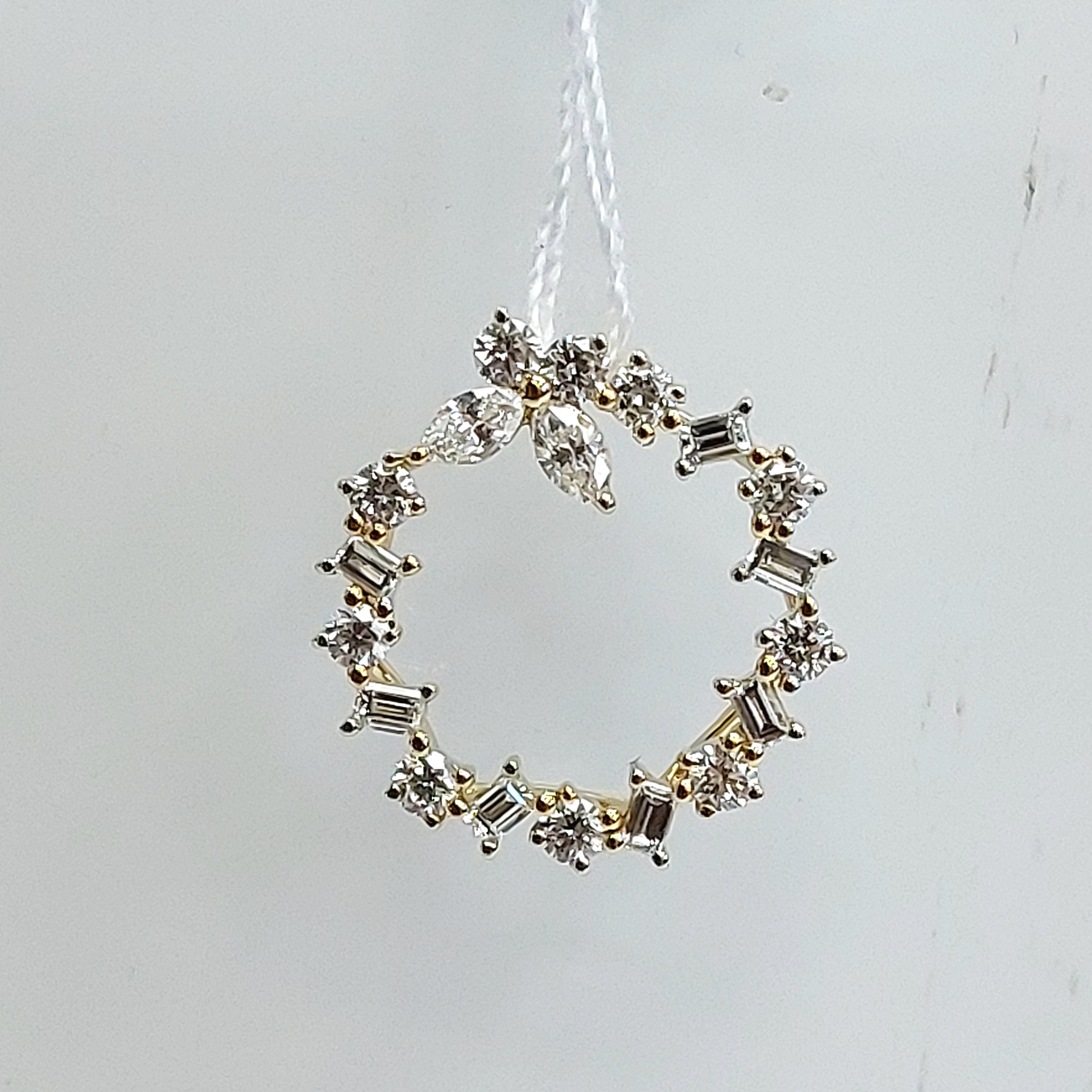 18K natural Diamond pendant/ Total diamond 7pcs baguette 0.17ct/ 2pcs MQ 0.11ct/ 10pcs round 0.32ct