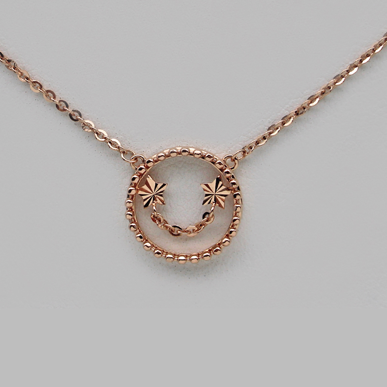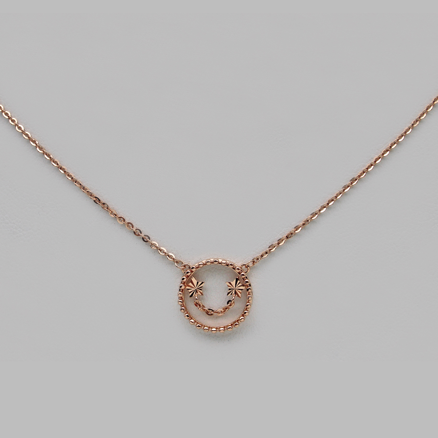 A simple but elegant piece of necklace with a pendant hanging in the middle. This pendant designed with an idea of a smiling face.