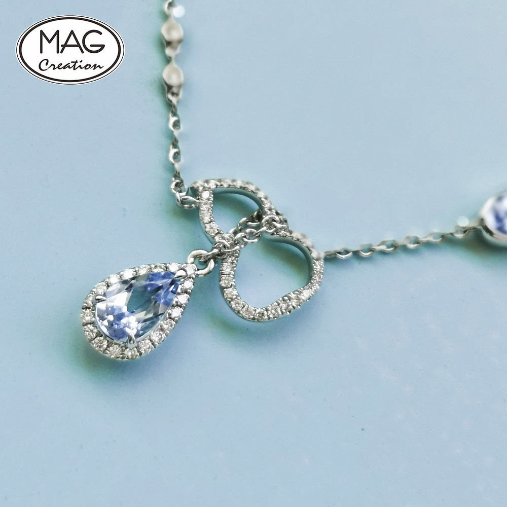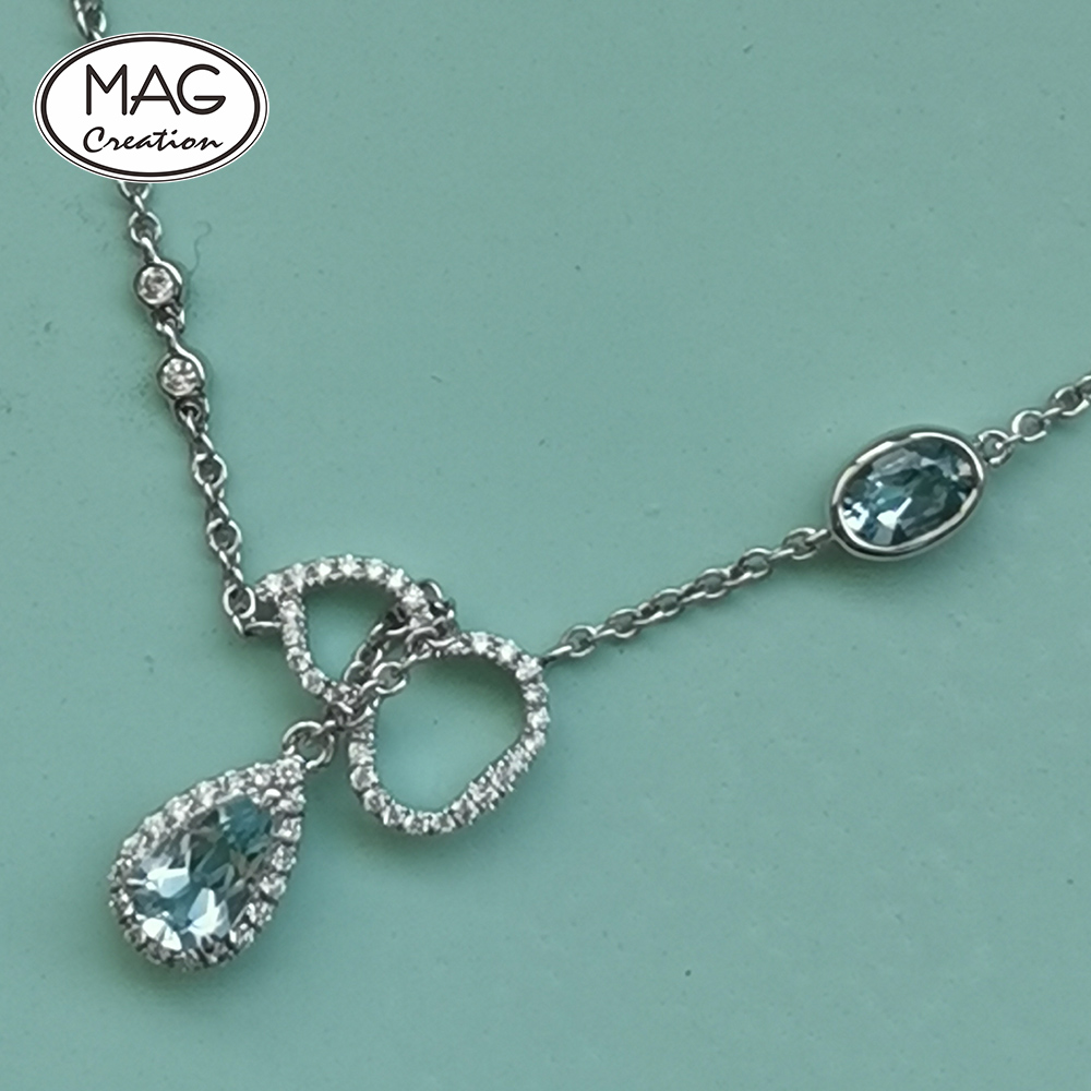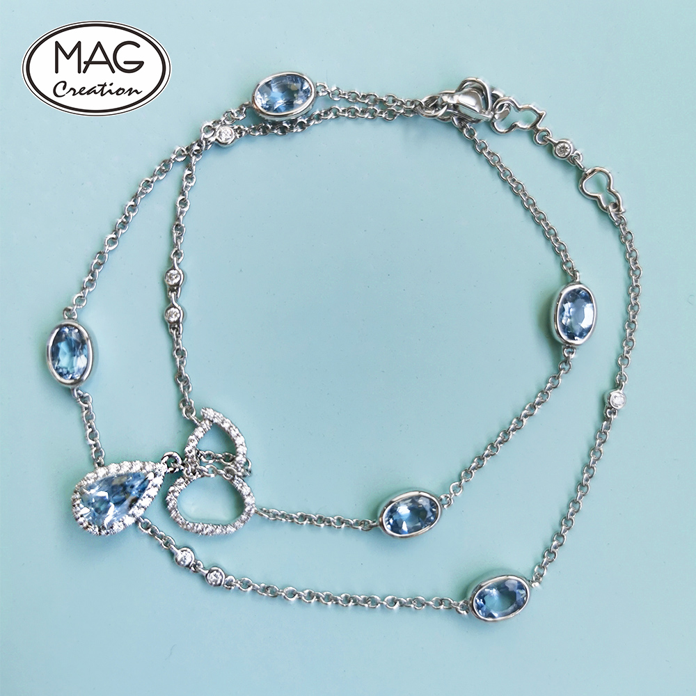 18K Gold Natural Aquamarine Natural Diamond Hulu Necklace