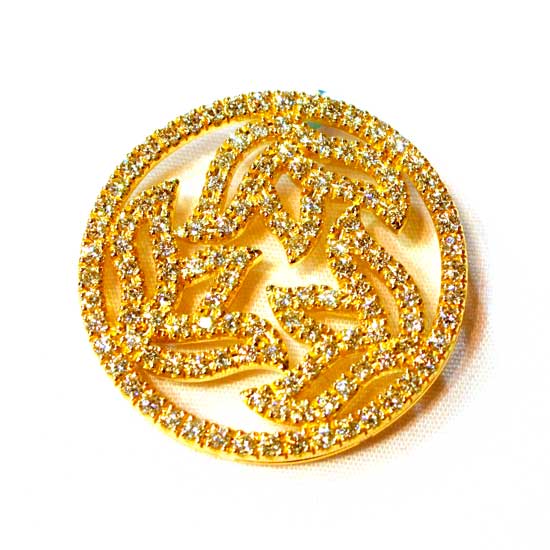 The 18K gold pendant comes in a round-shape design with cutout floral patterns. It is encrusted with diamonds allover to give a sparkling touch. Accessorize an elegant look with this exquisite gold pendant.