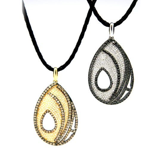 Presented to you is an elegant pendant in a beautiful tear-drop shape. The pendant is designed in an 18K gold setting accented with sparkling stones for an opulent touch. This 18K gold pendant complements your look nicely.