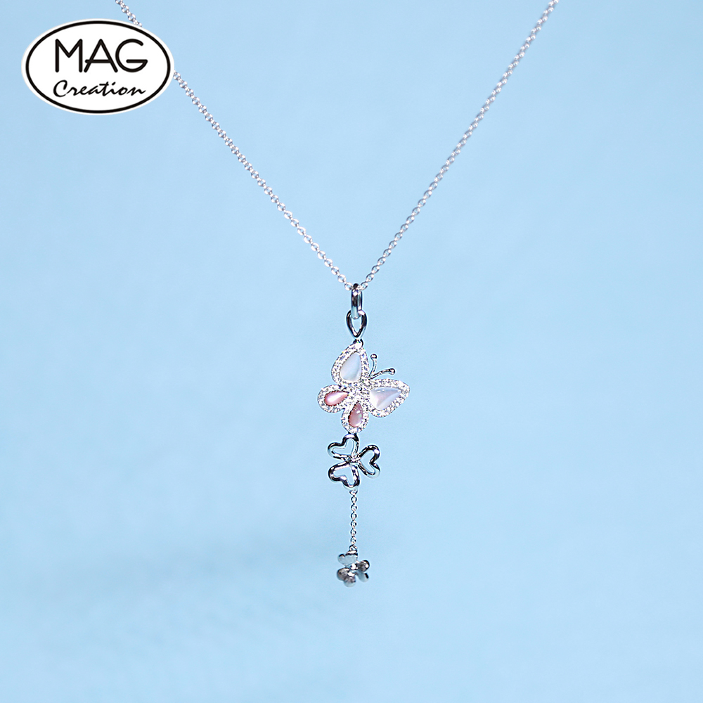 18K Gold Designer Collection Passion for Life Natural Shell Natural Diamond Butterfly Pendant