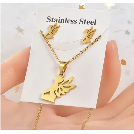 18K Gold Plated Stainless Steel Angel Shape Necklace Earrings Set