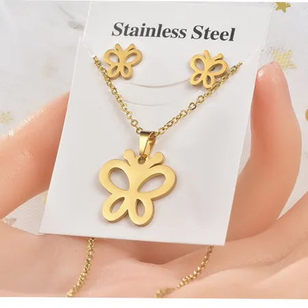 18K Gold Plated Stainless Steel Butterfly Shape Necklace Earrings Set