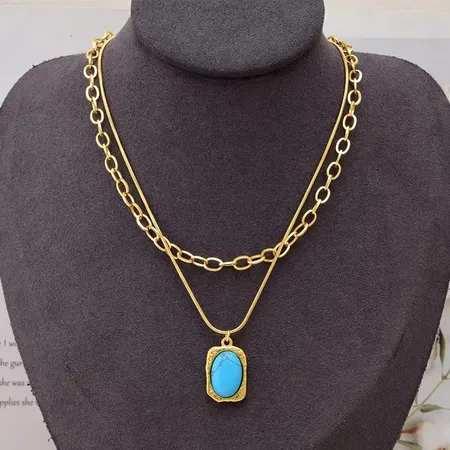 18K Gold Plated Stainless Steel Multi Layered Pendant Necklace for Women
