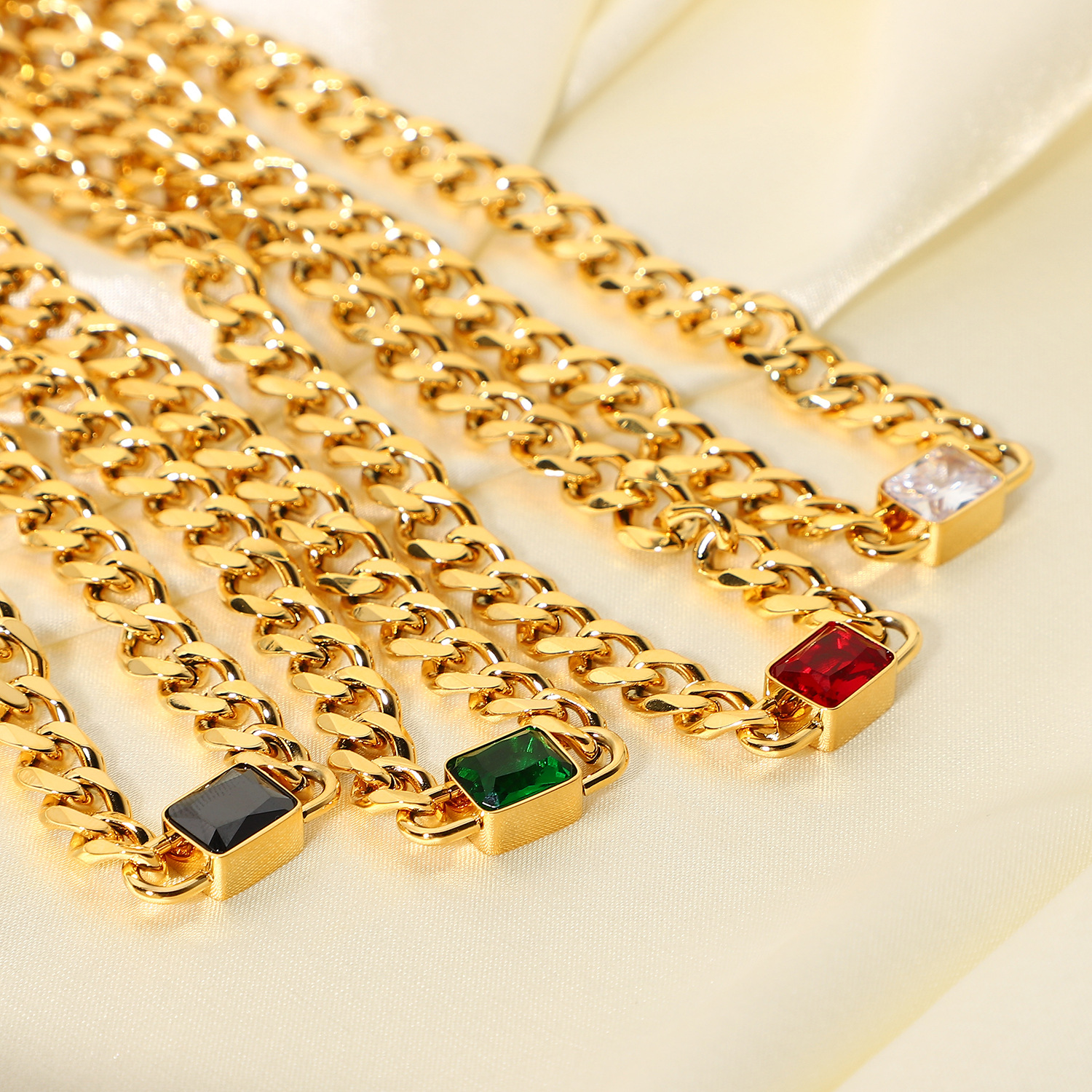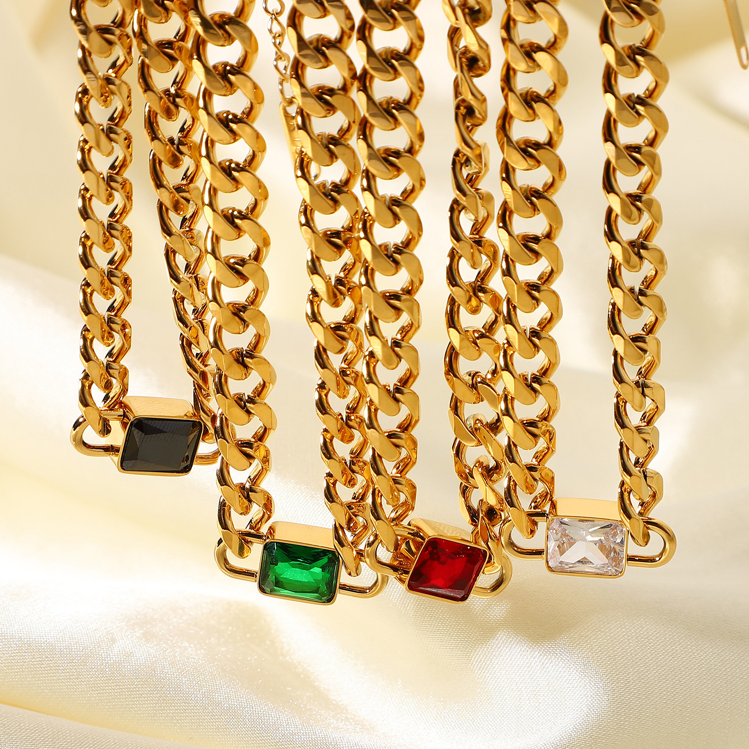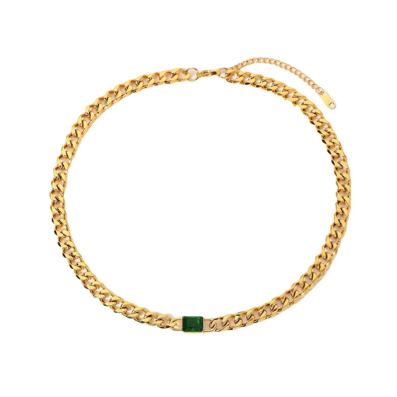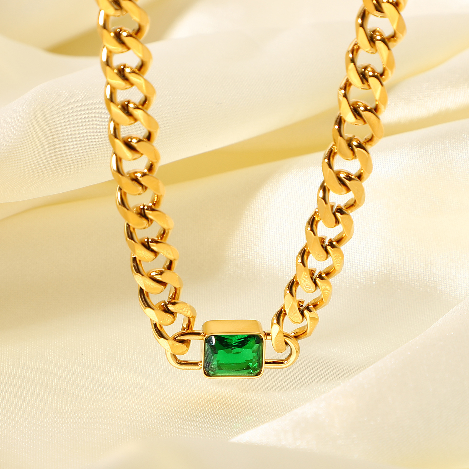 18K Gold Plated Stainless Steel green red white zircon Necklace cuba chain necklace for women Emerald jewelry cuba chain jewellery