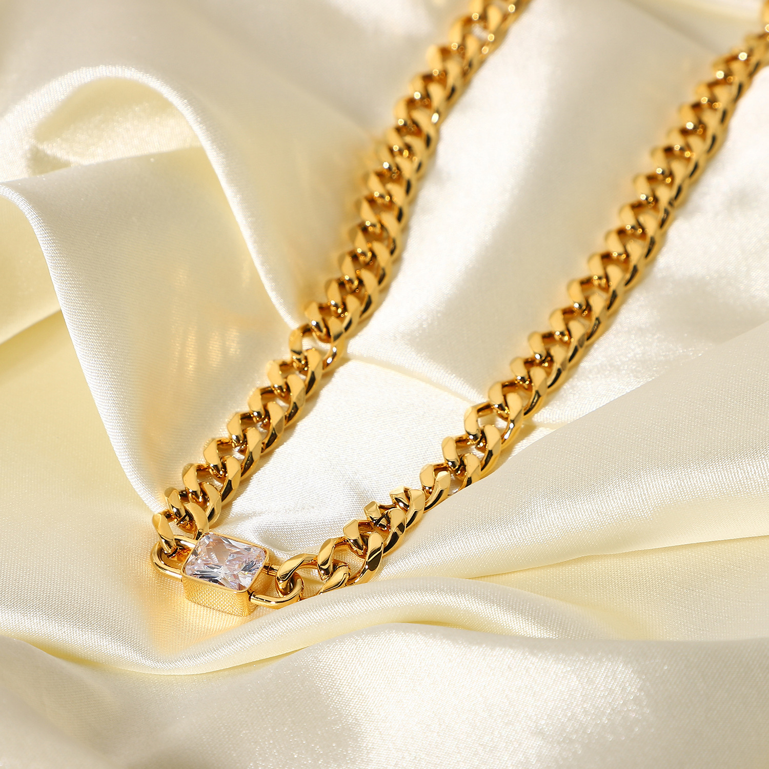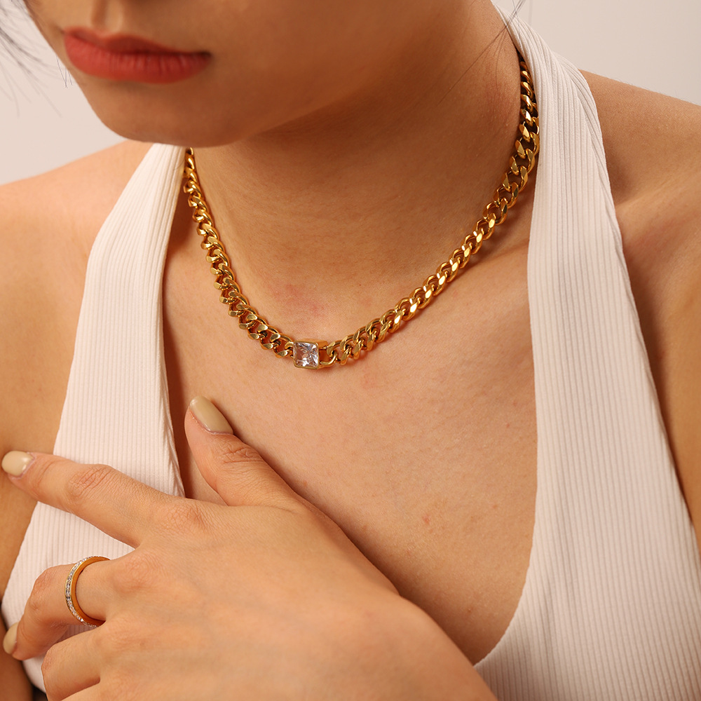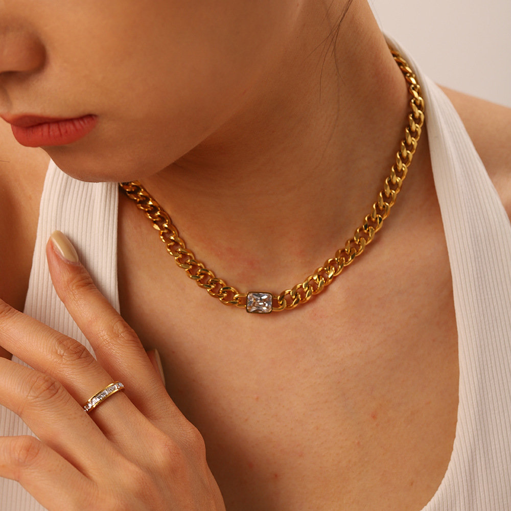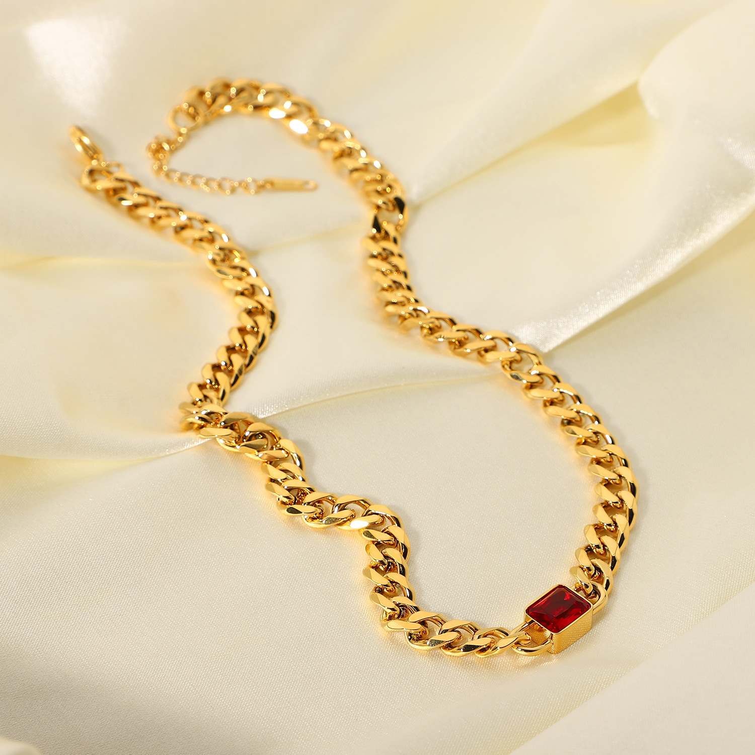 18K Gold Plated Stainless Steel green red white zircon Necklace cuba chain necklace for women Emerald jewelry cuba chain jewellery
