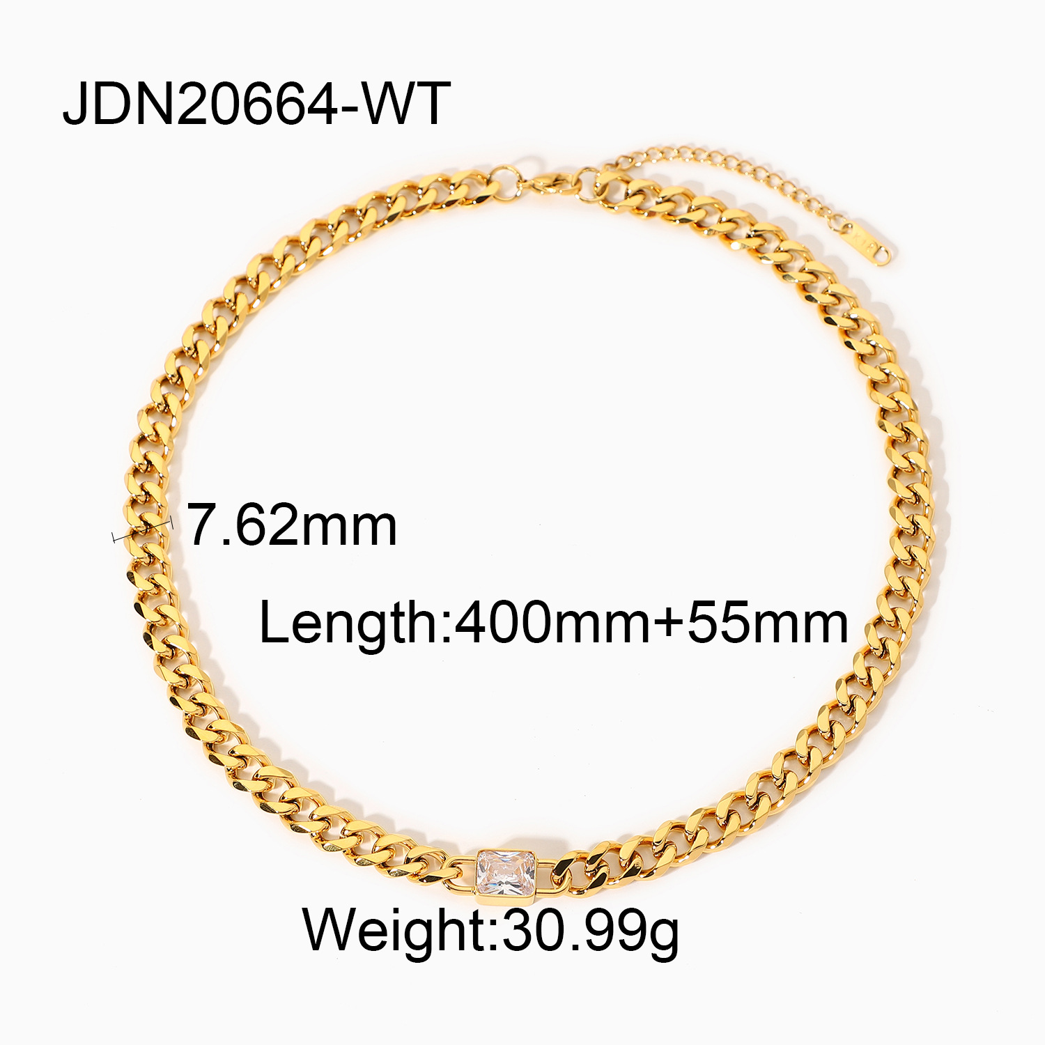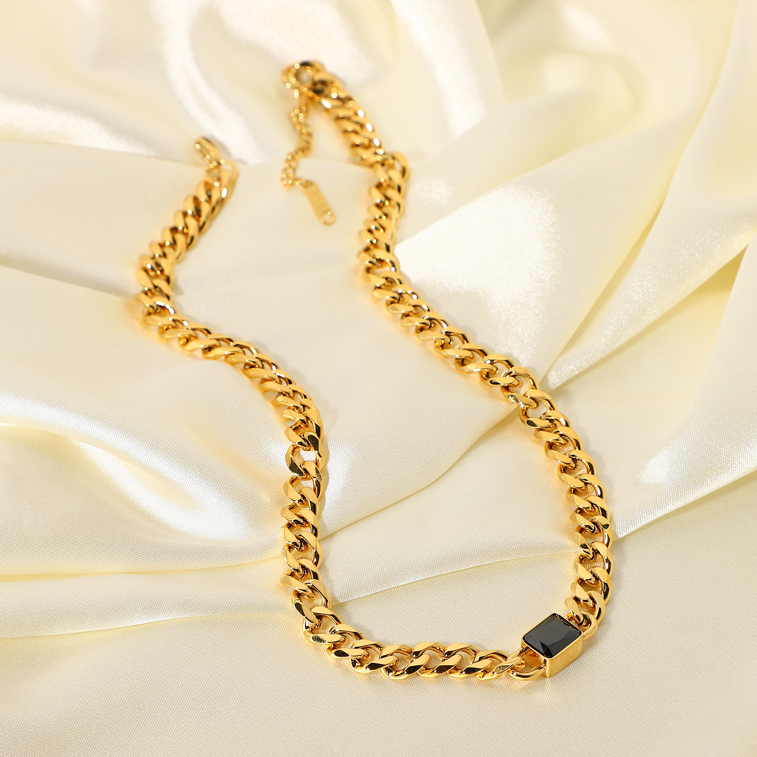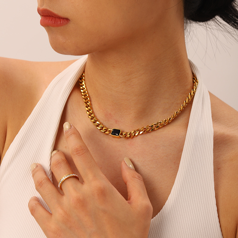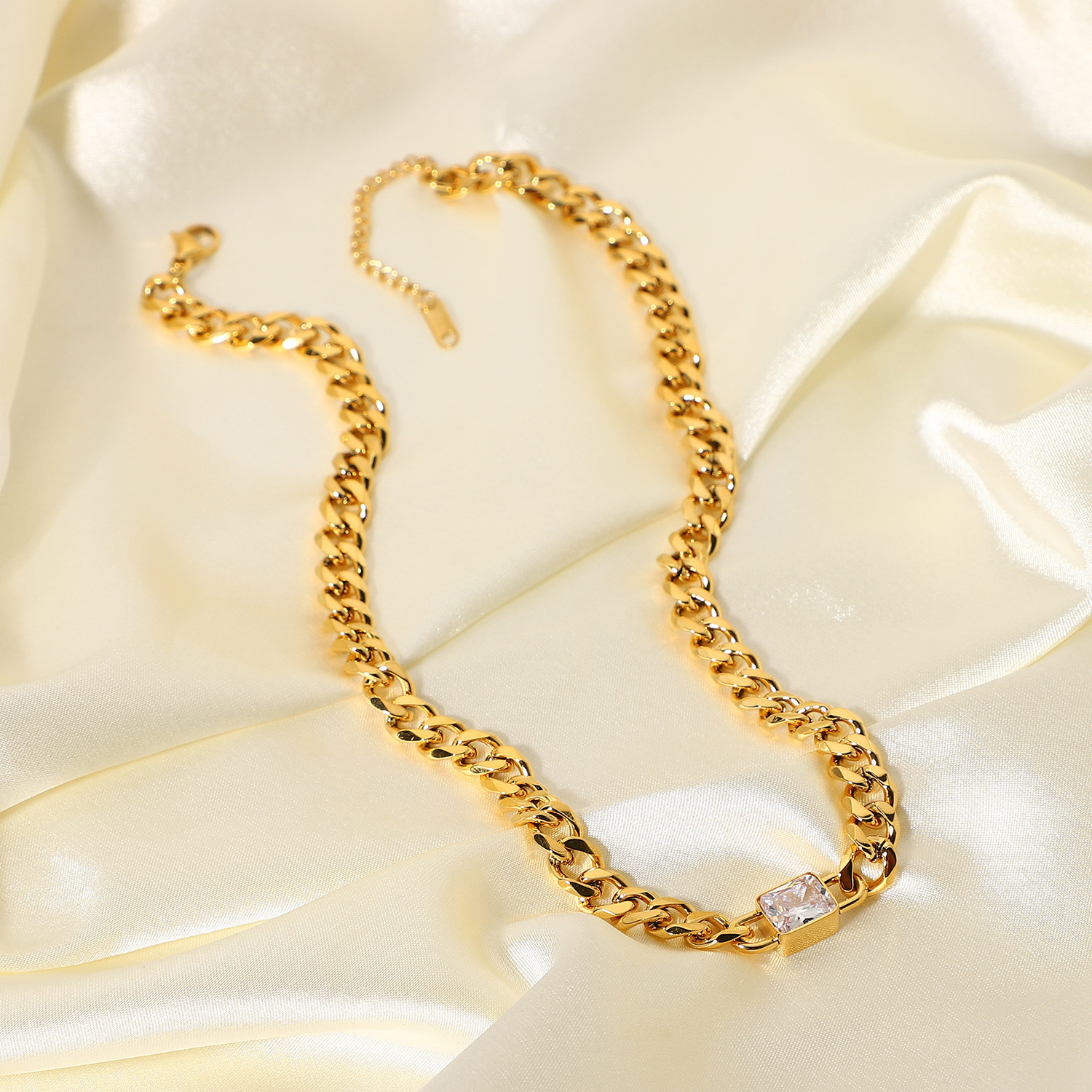 18K Gold Plated Stainless Steel green red white zircon Necklace cuba chain necklace for women Emerald jewelry cuba chain jewellery