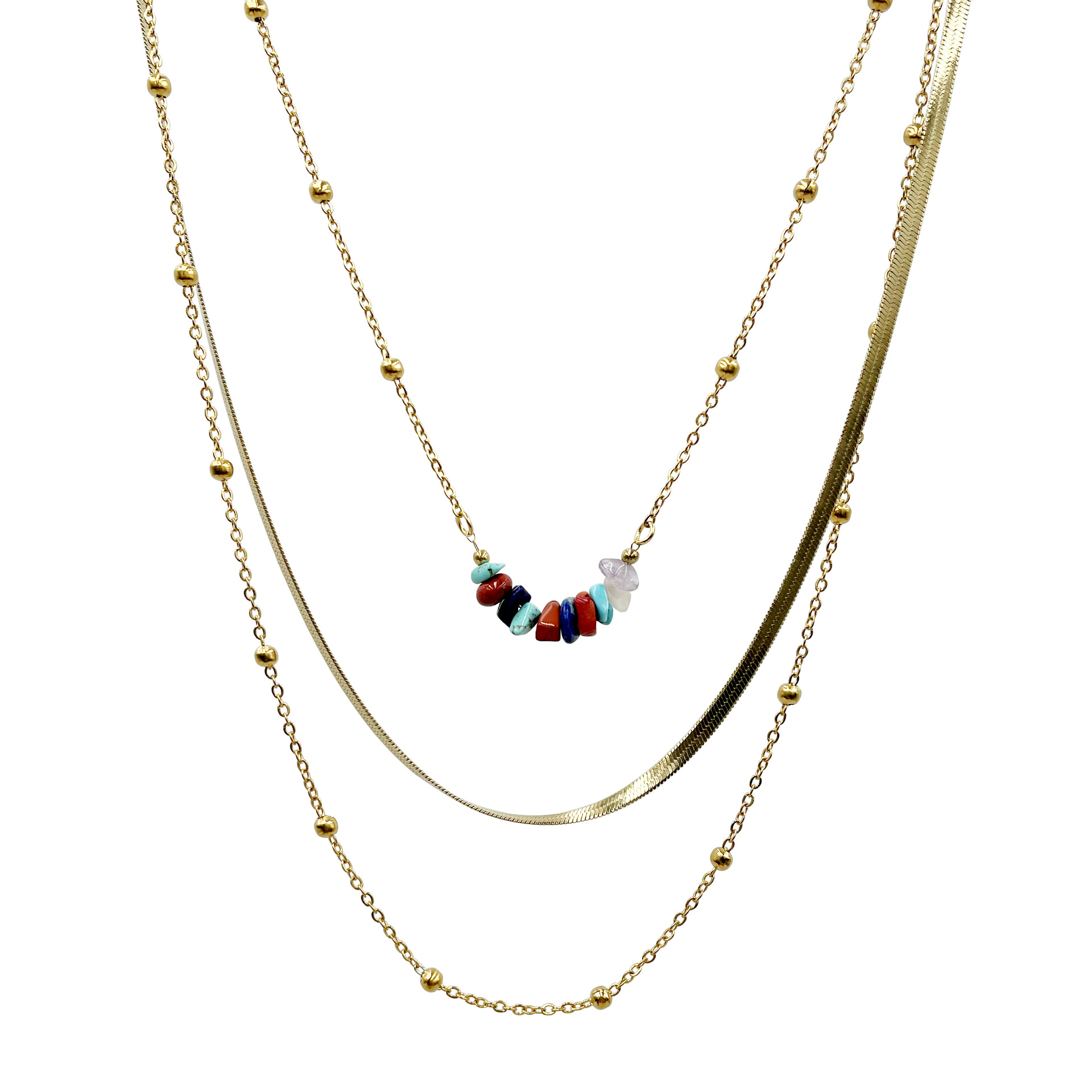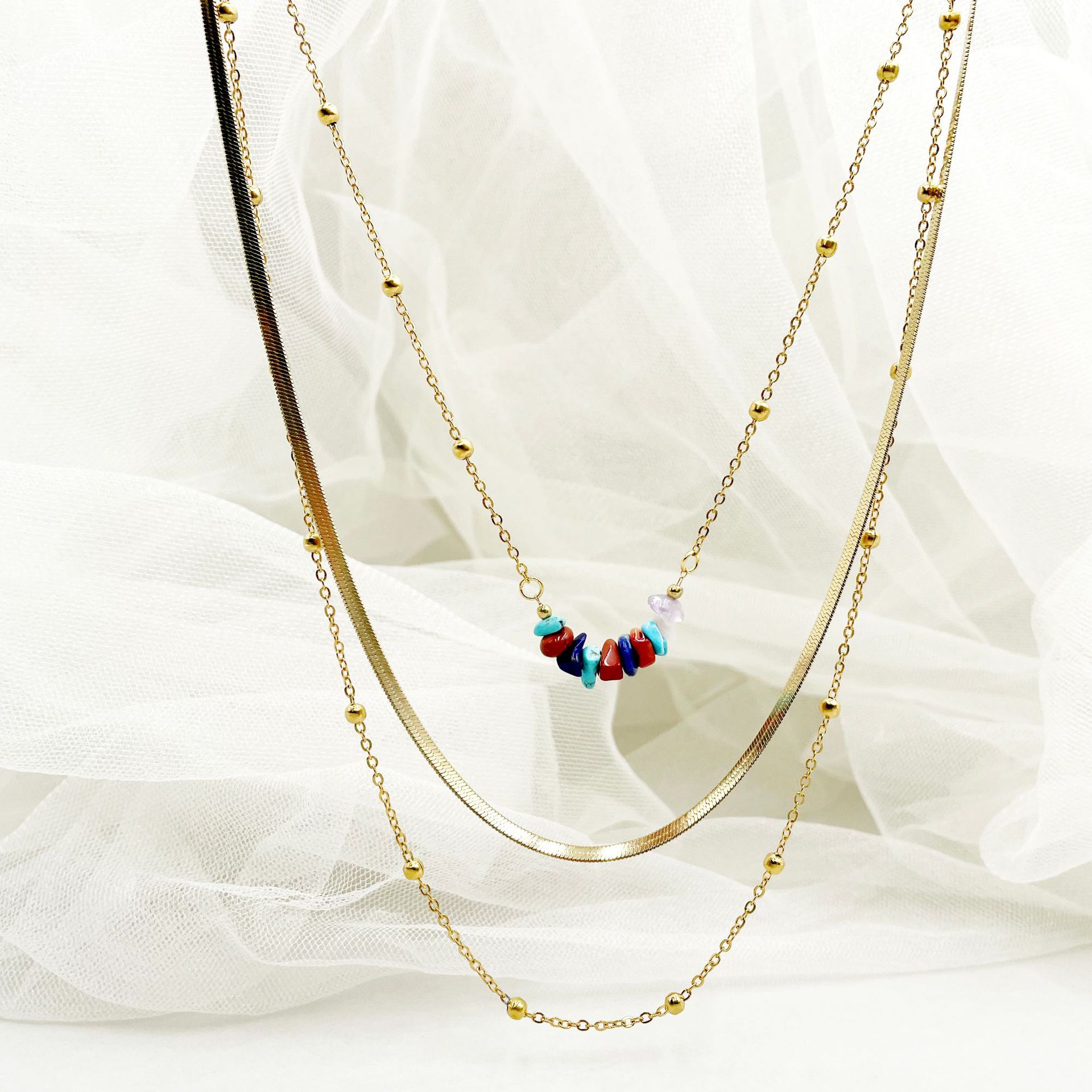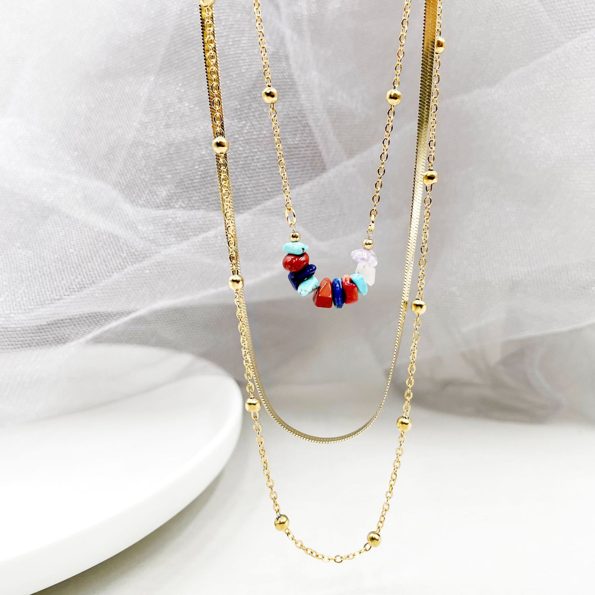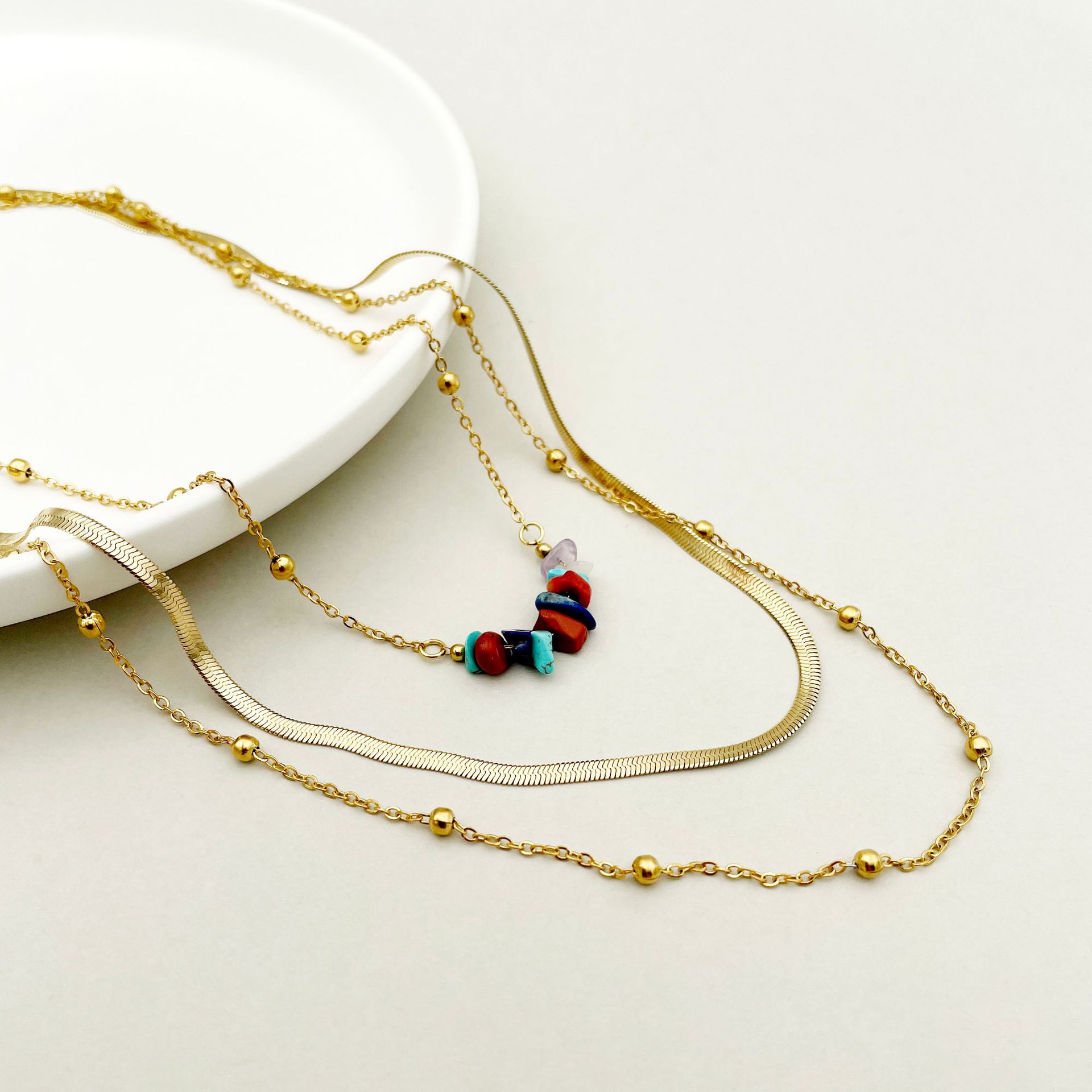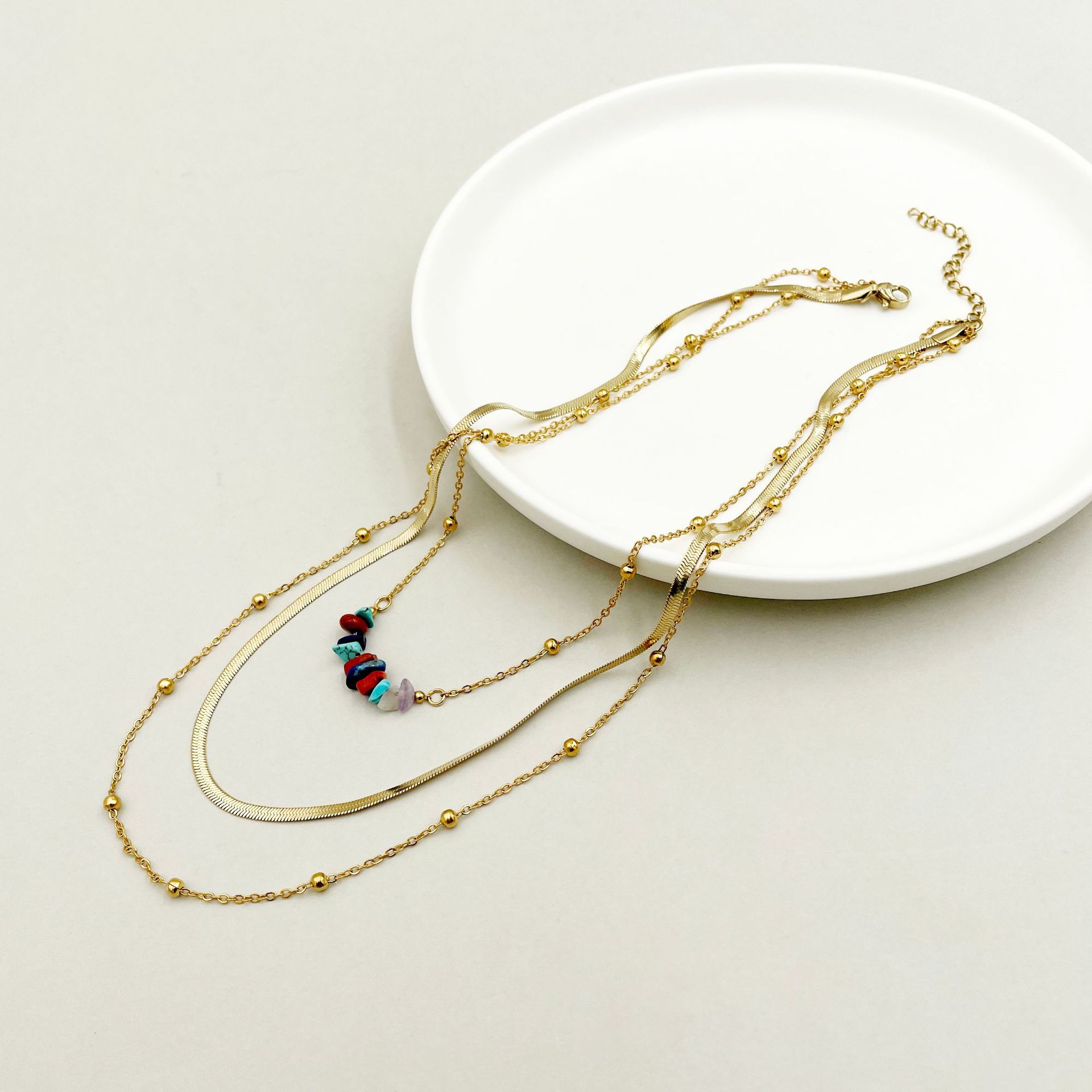 18K Gold Plated Stainless Steel pendant Necklace Titanium pendant necklace for women Bohemia style necklace multi layered shaped pendant necklace summer necklace