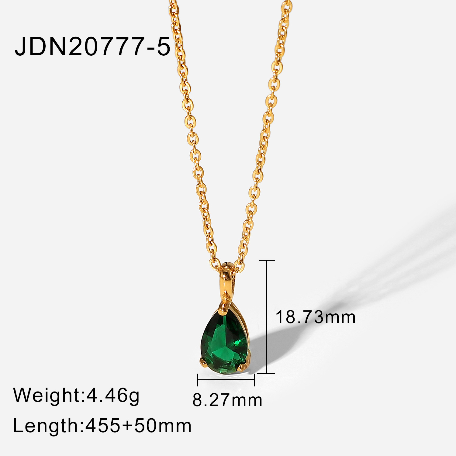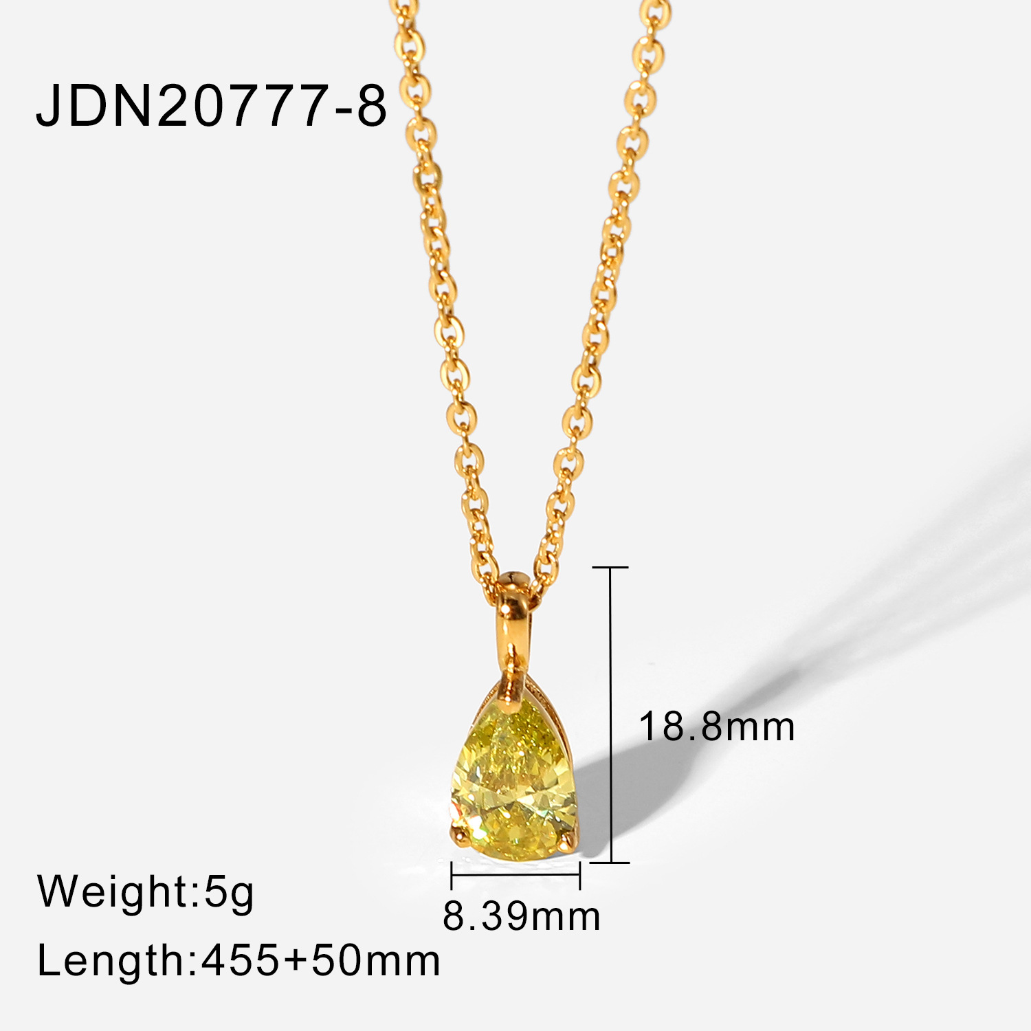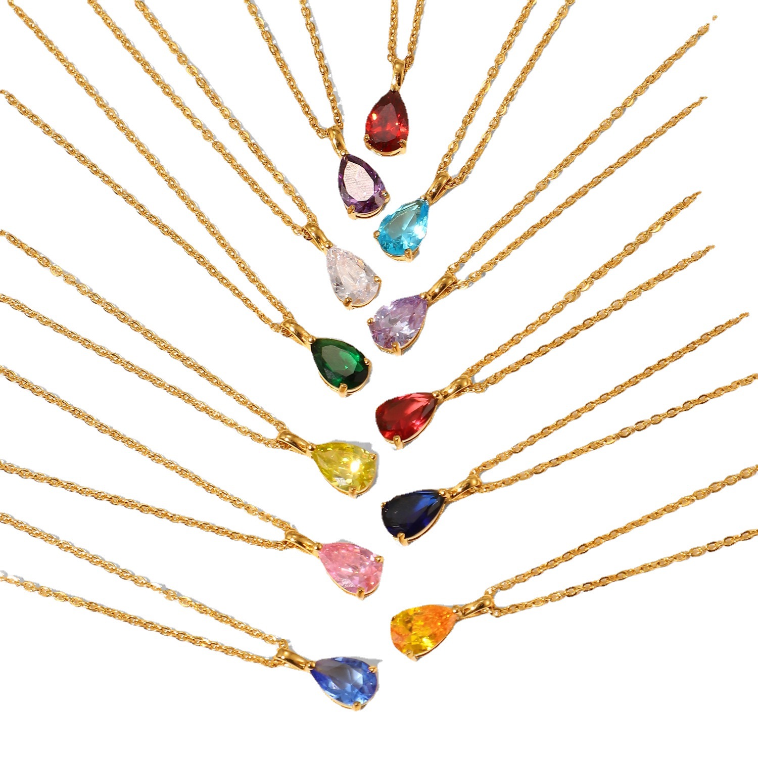 18K Gold Plated Stainless Steel pendant Necklace for women colorfull zircon pendant necklace water drop shape pendant necklace