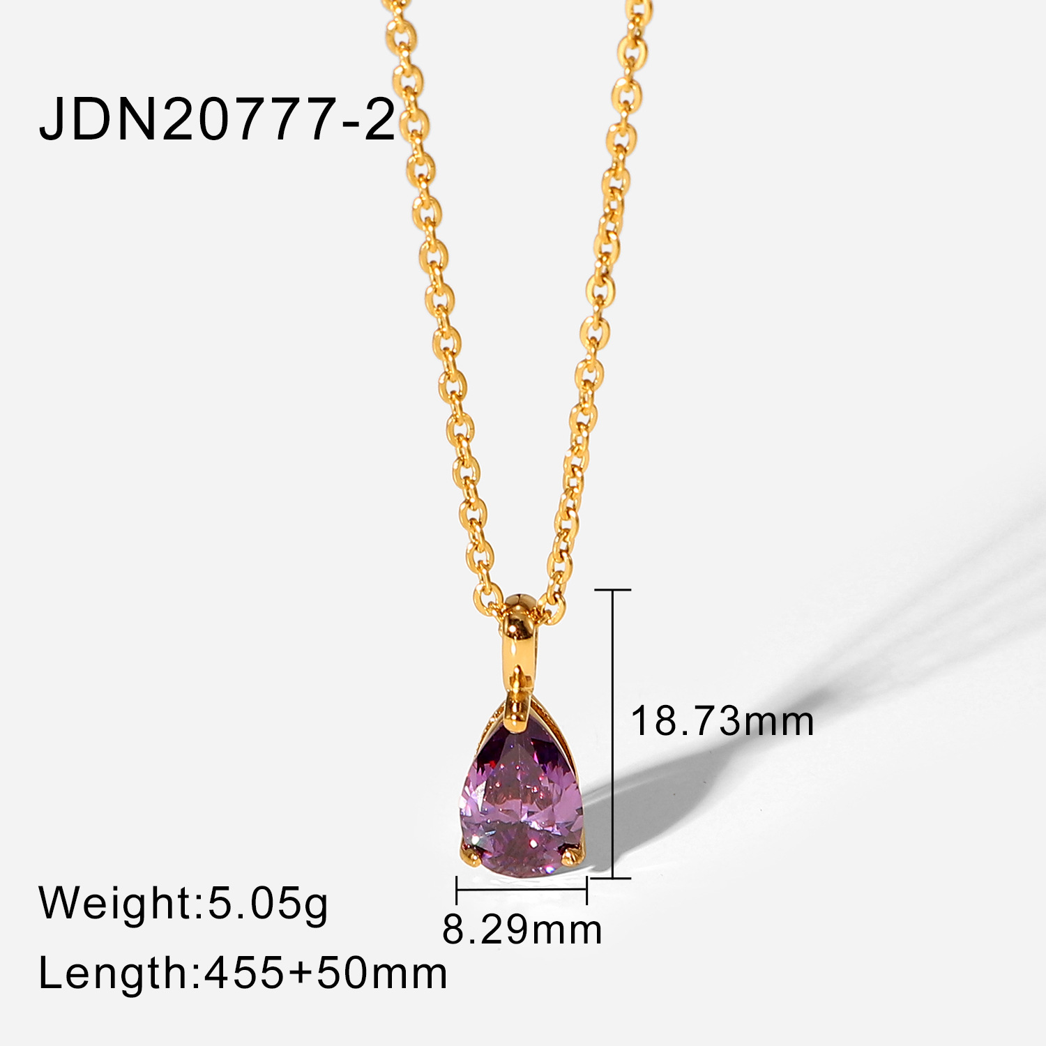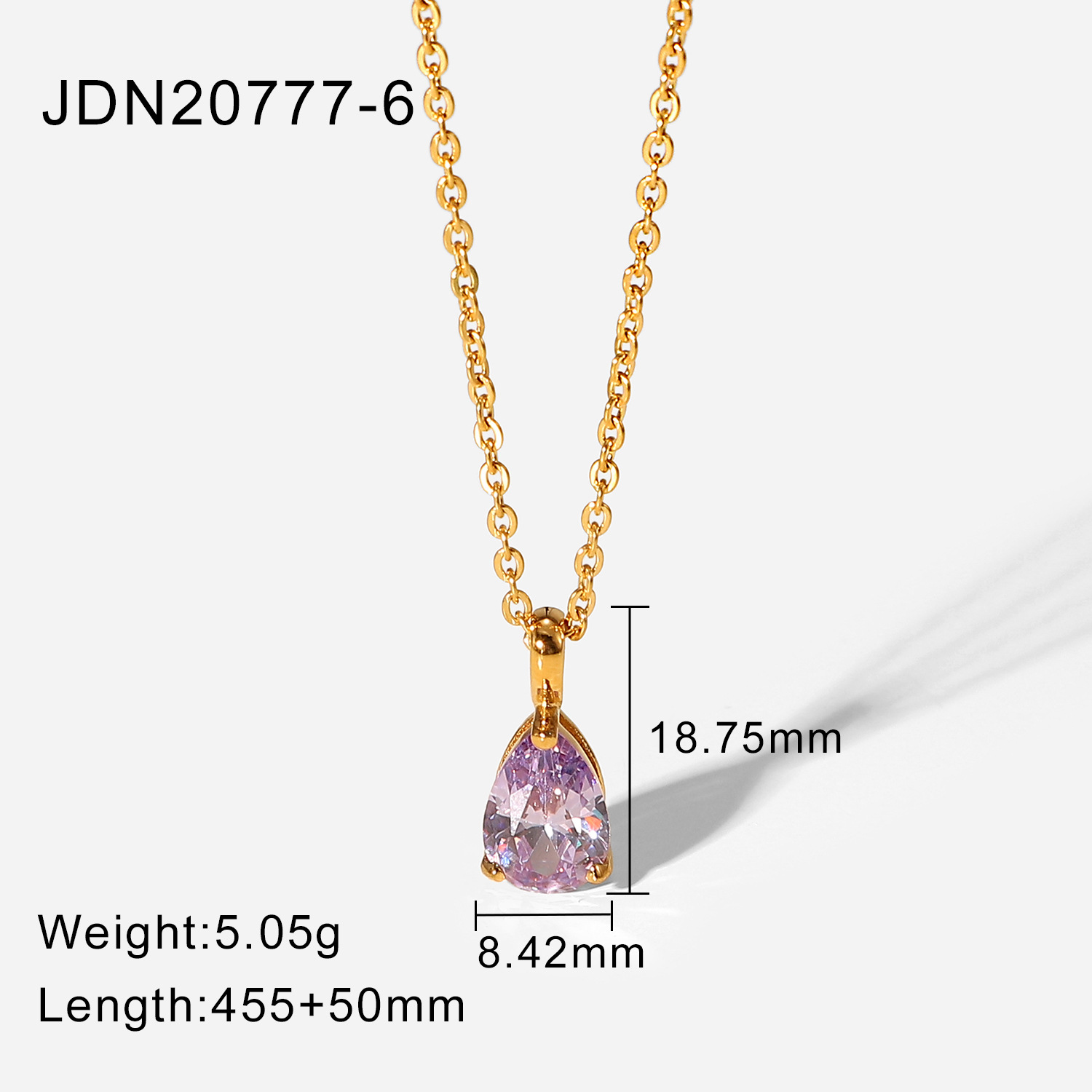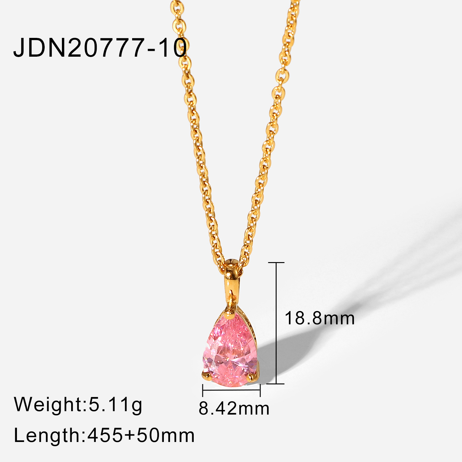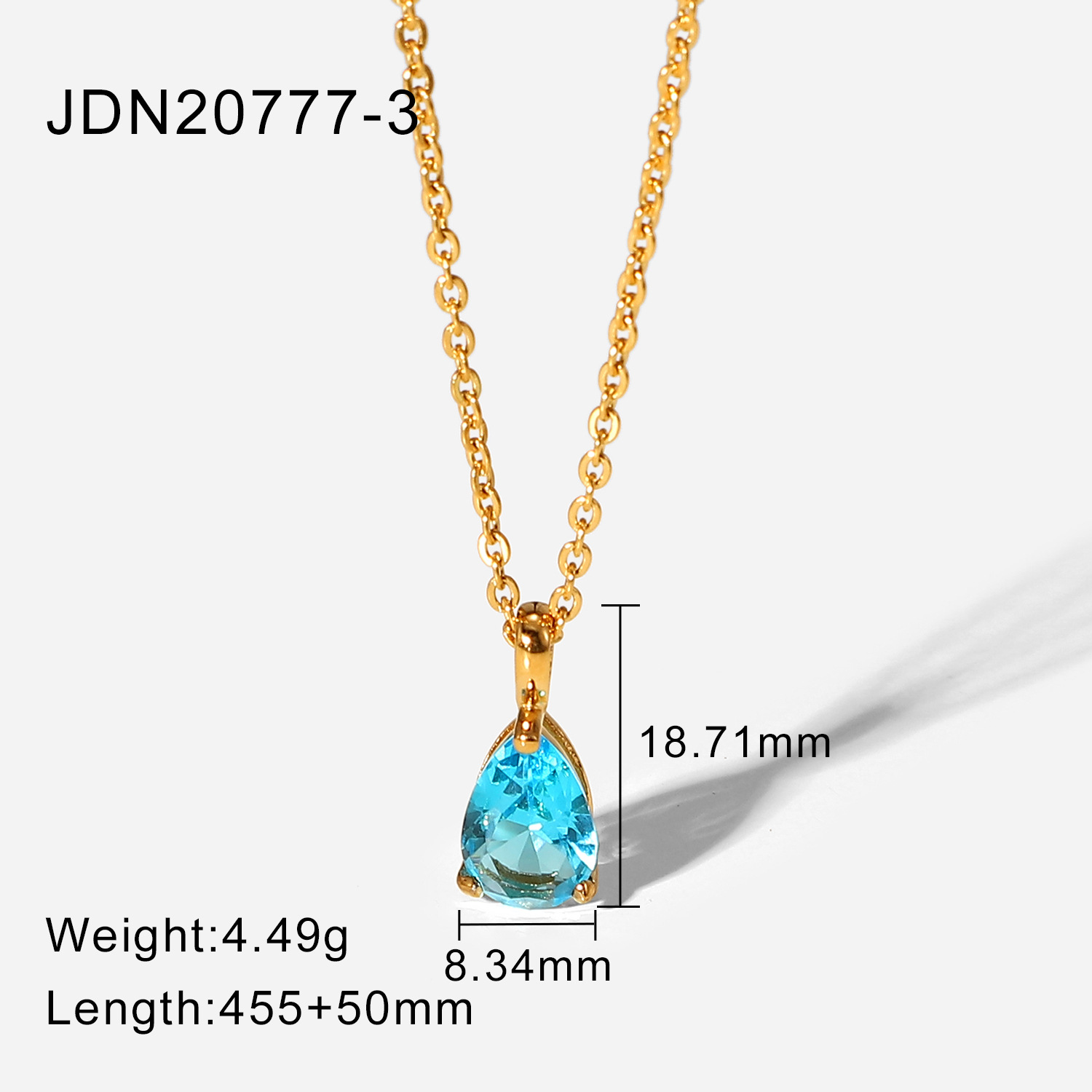 18K Gold Plated Stainless Steel pendant Necklace for women colorfull zircon pendant necklace water drop shape pendant necklace