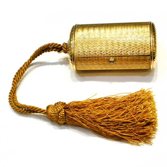 Displayed here is a ladies' purse with 18K gold casting. It is adorned with a matching tassel. Highlight your style with this 18K gold purse.