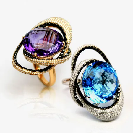 Glamorous and stylish, you will surely make a chic statement with this exquisite 18K gold ring. The glittering stones add enhanced sparkle and brilliance to the finger ring. This alluring 18K gold ring is great for parties.