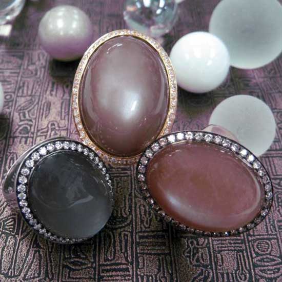 - Available in 18K yellow gold ring with diamonds and a brown moonstone.