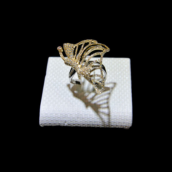 This is an 18-karat finger ring that shimmers with a high-gloss finish. The allover dazzling loose diamonds are well paved on the sophisticated setting. This finger ring shimmers with a high-gloss finish.