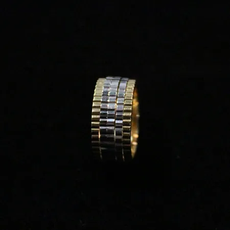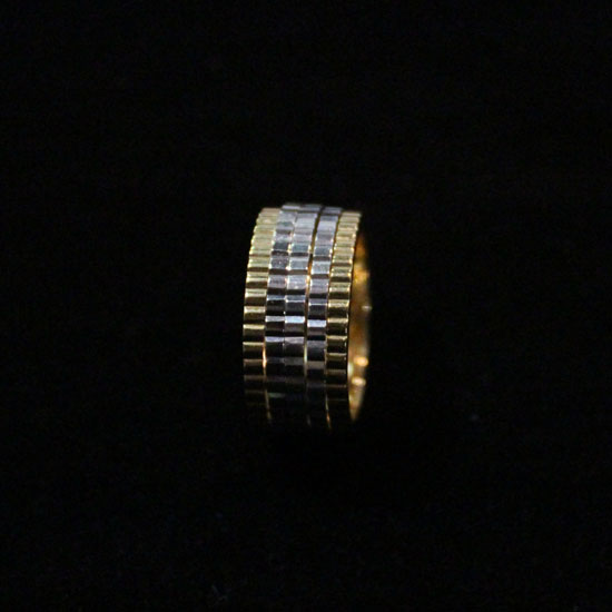 This finger ring comes with a 2-toned design in silvery and golden colors. It is finely carved from top quality 18K gold for superior shine. The gold ring adds some glamor to your slender finger.