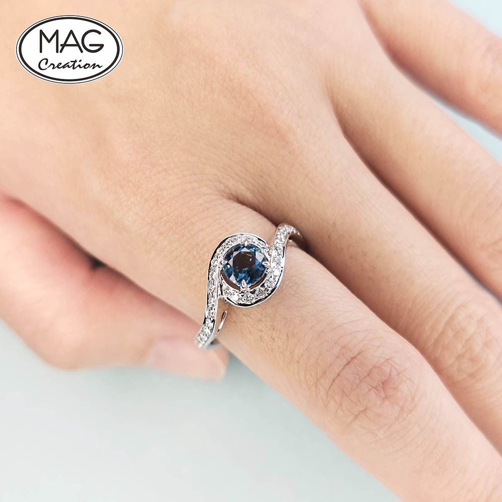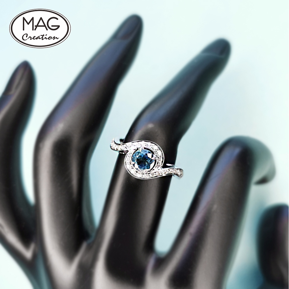 18K white gold, 0.61ct natural Aquamarine, 0.33ct F VS natural Diamond