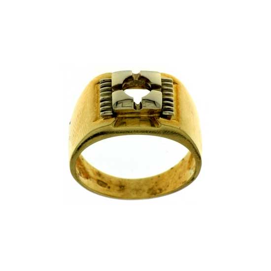 This royal men's ring mounting features a yellow leather band and an 18K gold setting, which is perfect for diamonds or gemstones seeking a new classic setting. It goes with a matt finish and accents a masculine look. This gold ring mounting portrays the look of success.