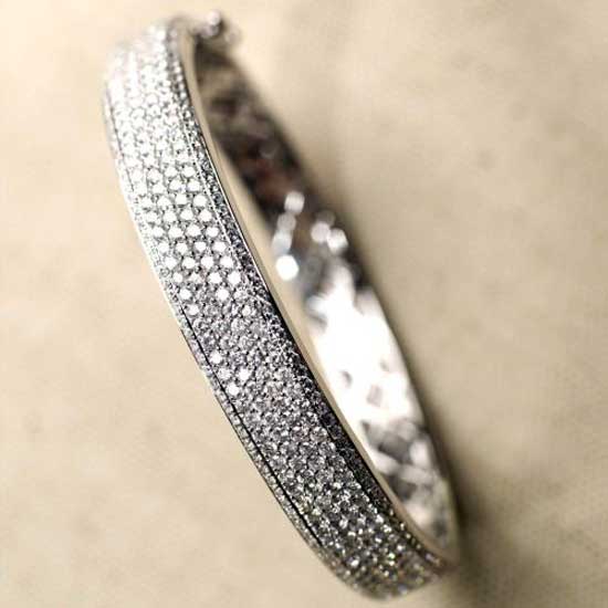 This stunning 18K white gold bangle is adorned with several hundreds of white diamonds in a micro-pave setting. The gorgeous bangle delivers irresistible shine and glamor from any angle. The versatile bangle can be worn on different occasions.