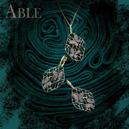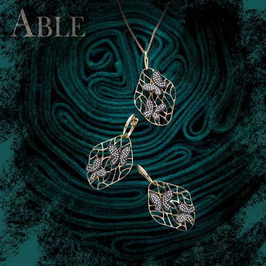 This charming pendant presents a fascinating design inspired by nature. Fancy butterflies of diamond and black rhodium rest on a delicate gold web. This well-crafted jewelry adorns your look with a touch of spring.