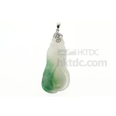 • 18K Icy green grade A Jadeite carved with Buddha’s Hand (佛手瓜) Diamond Pendant