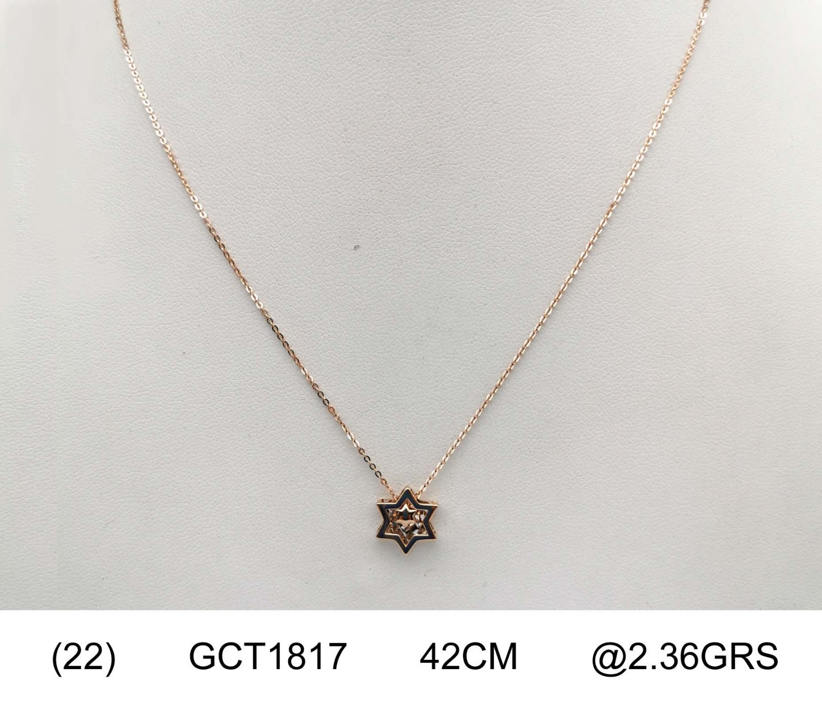 A piece of pink gold necklace hanging in the middle part with a star shape element.