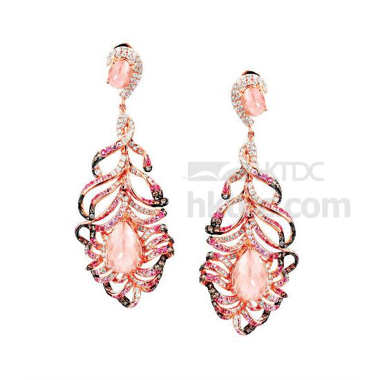 Let the pinkish lights dance on your ears by wearing this pair of elegant earrings. The soft brilliance and colours, created by an assembly of morganites, pink sapphires and diamonds, represent the gentleness of souls - as light as feathers.