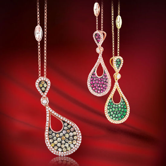 This 18K rose gold pendant comes with a fashionable and modern design. It can be crafted with fancy color diamonds and diamonds or pink sapphires and diamonds for added elegance. This well-designed pendant will surely make you stand out from the crowd.