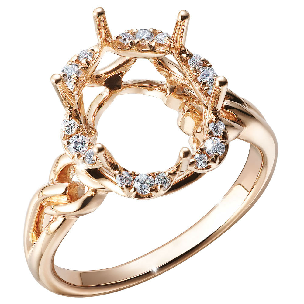 Masterly crafted and molded, this shimmering ring mount is an unrivalled choice to complete a diamond ring. Boasting exquisite craftsmanship, the 18K rose gold ring comes with an intertwined shank design and lustrous accent diamonds adorned around the center stone. Reinforced with a sturdy prong mount, it assures a secure grasp of the diamond without a doubt.