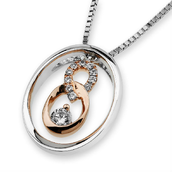 18K Rose & White Gold Double Round Diamond Pendant