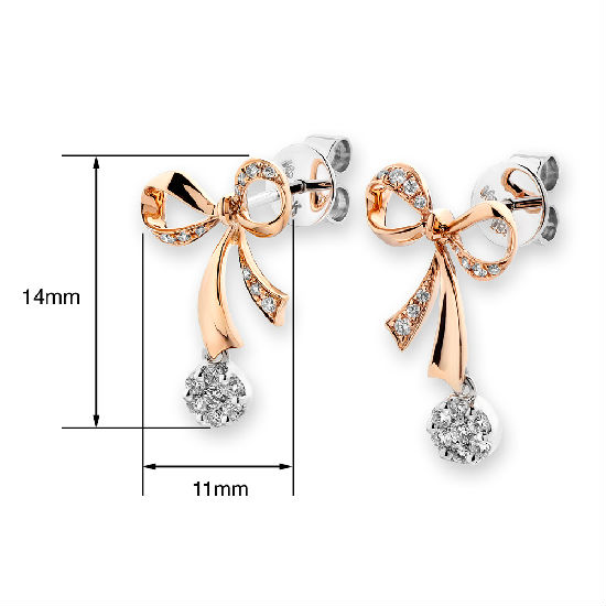 18K Rose & White Gold Ribbon Bow with Dangle Stud Earring