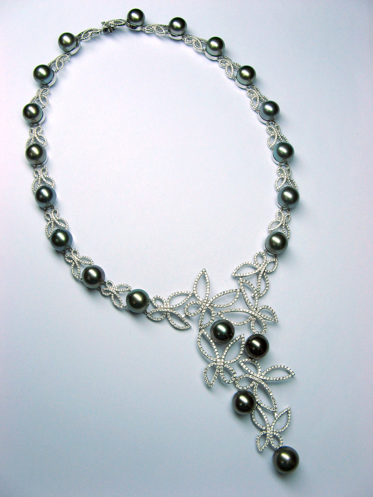 18K W/G Diamond Tahitian Pearl Necklace