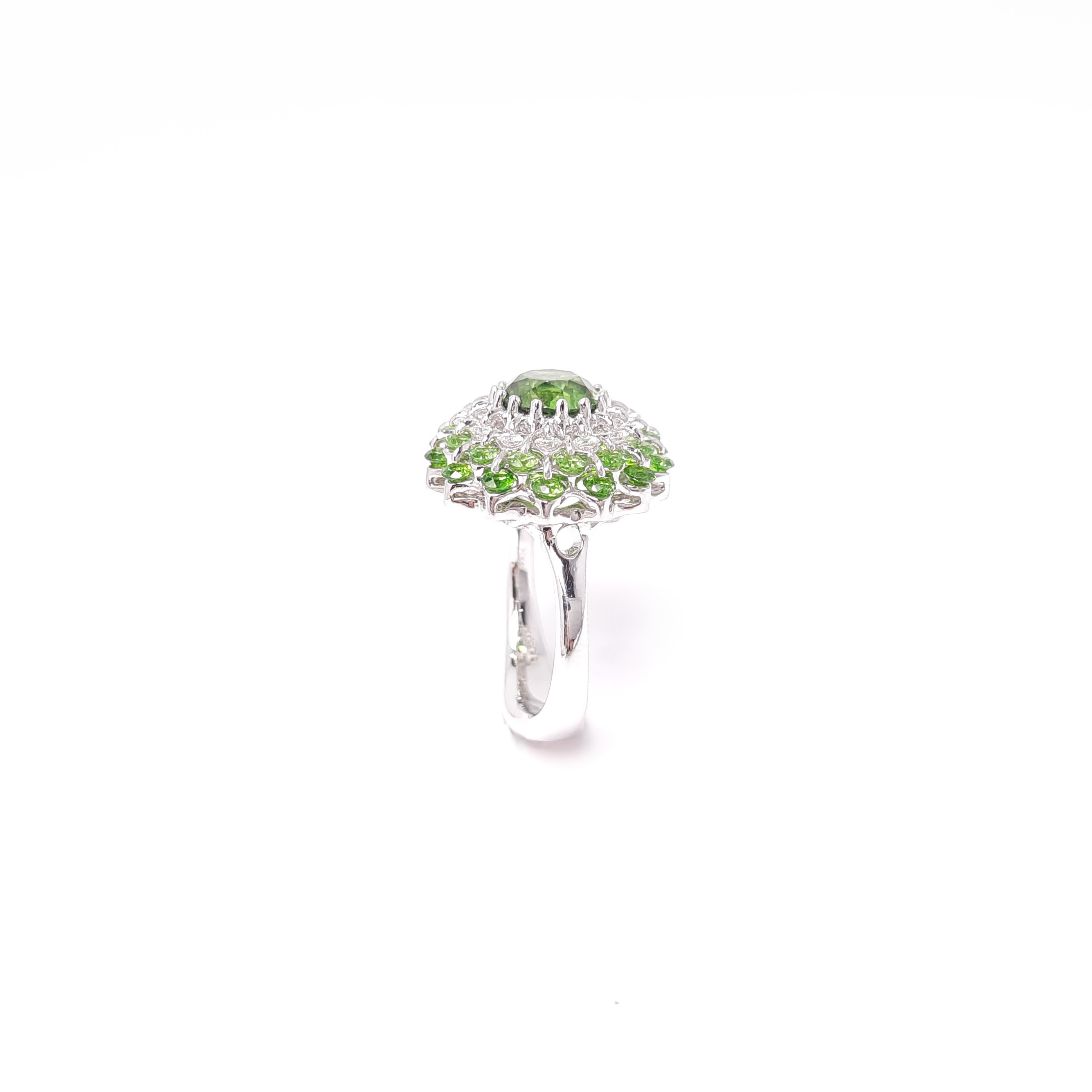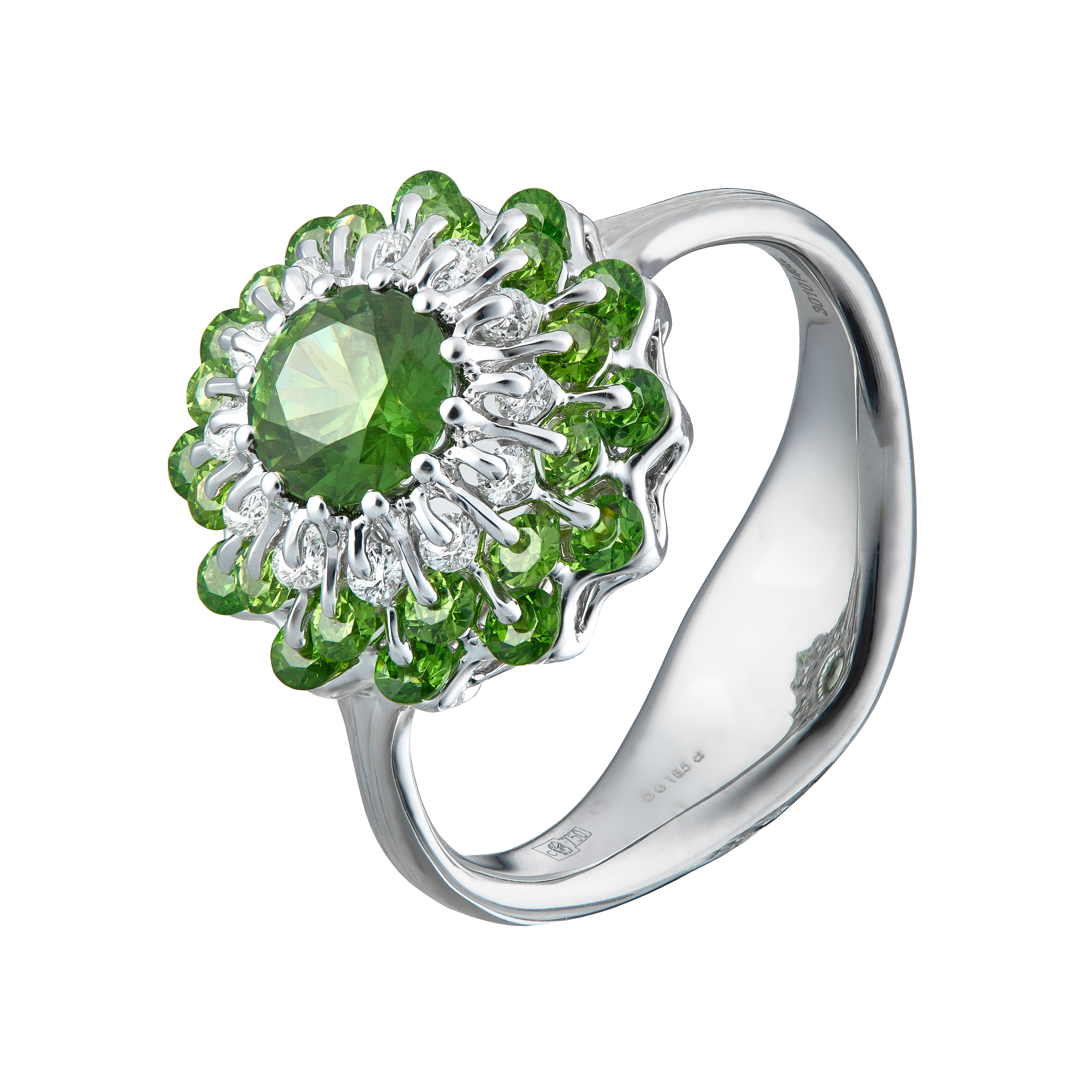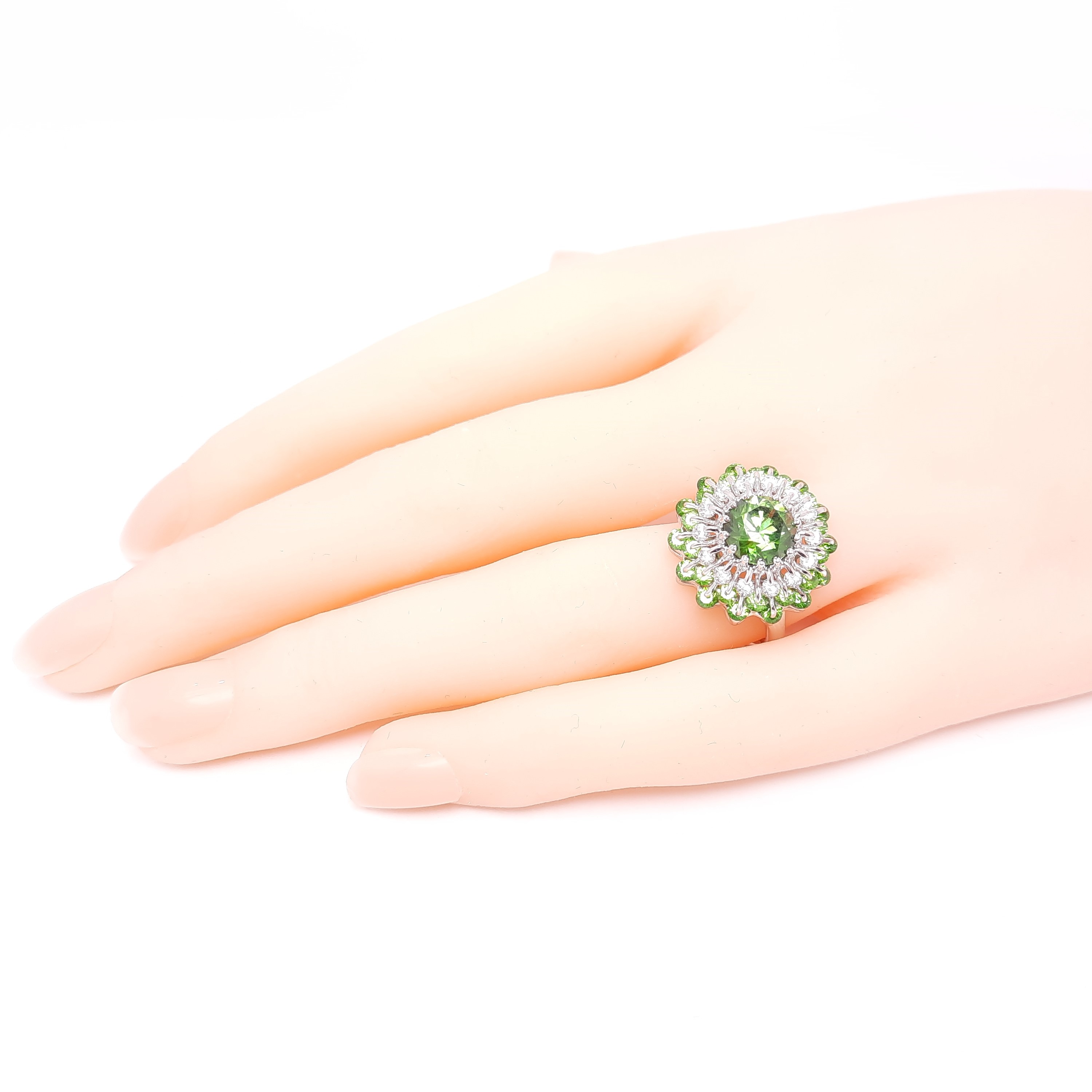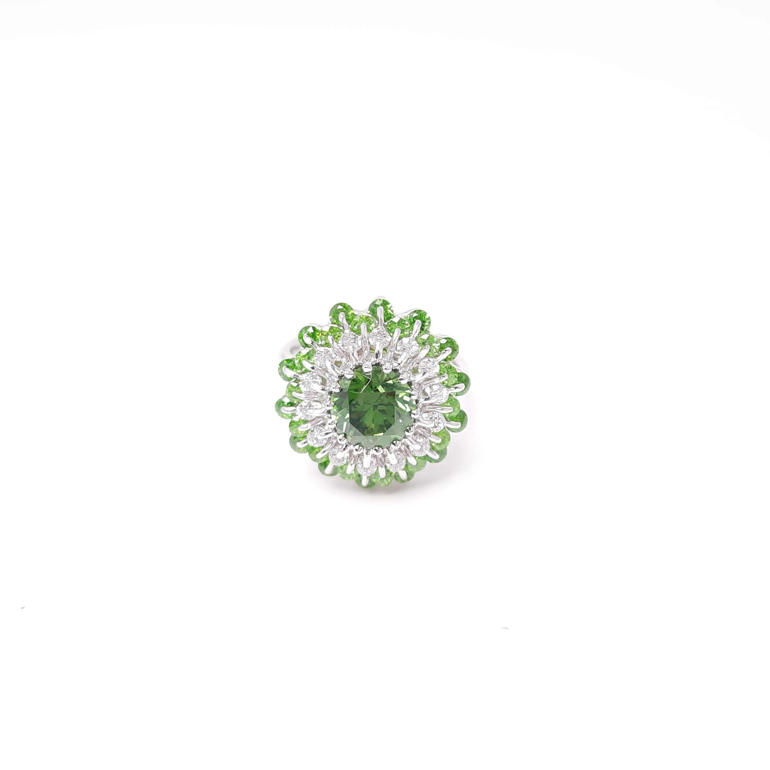 18K WG Diamond & Demantoid Garnet Ring Patented Technology