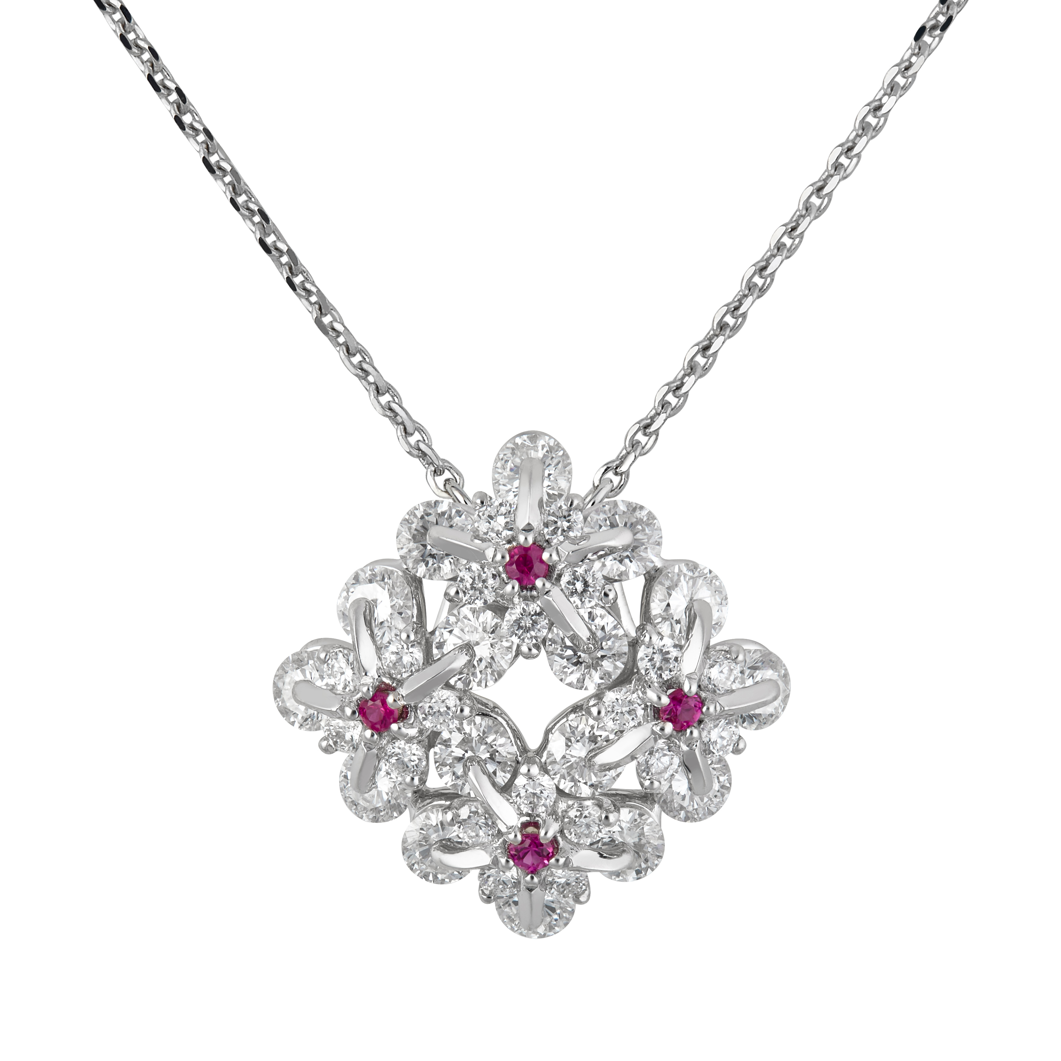 Symbol of remembrance and eternal love, Forget Me Not flower has become an everlasting flower made in 18karat white gold, 1ct diamonds. Mounted in the internationally patented Waltzing Brilliance technology, this lively pendant will be a precious memory for your customer. A diamond secured by two points trembles and rotates like a gem ballerina, generating the maximum light effect.