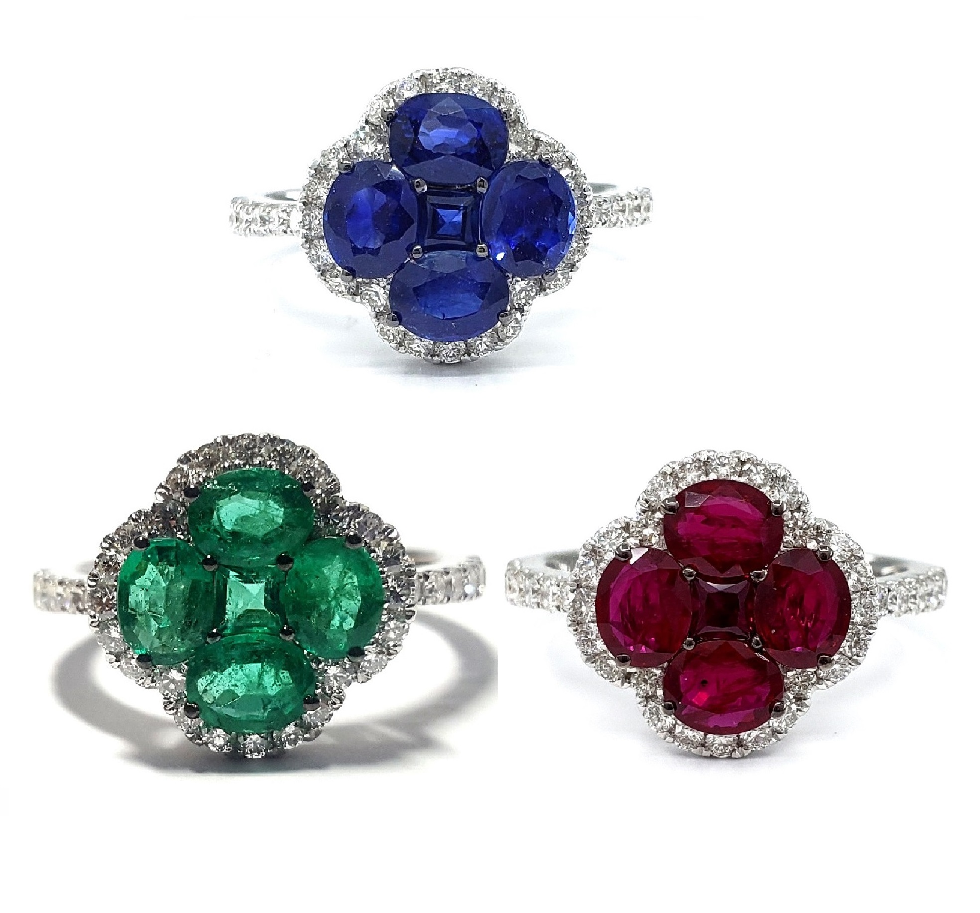 | Product Name | 18K WHITE GOLD DIAMOAND & BLUE RUBY EMERALD SAPPHIRE RING |