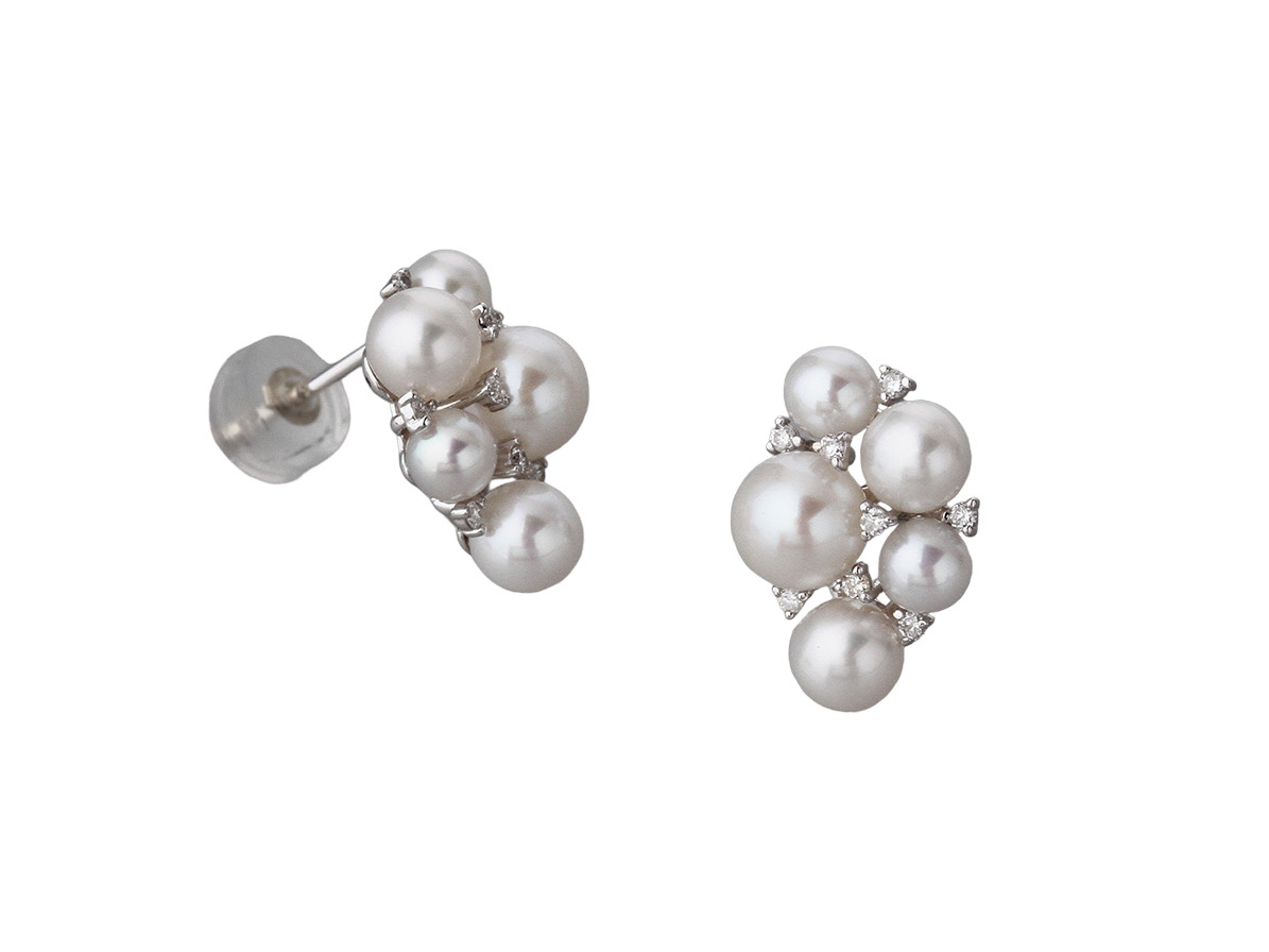 18K WHITE GOLD EARRINGS WITH 3.5-6MM ROUND SHAPE FRESHWATER PEARL AND DIAMOND, WITH SILICON EAR BACK