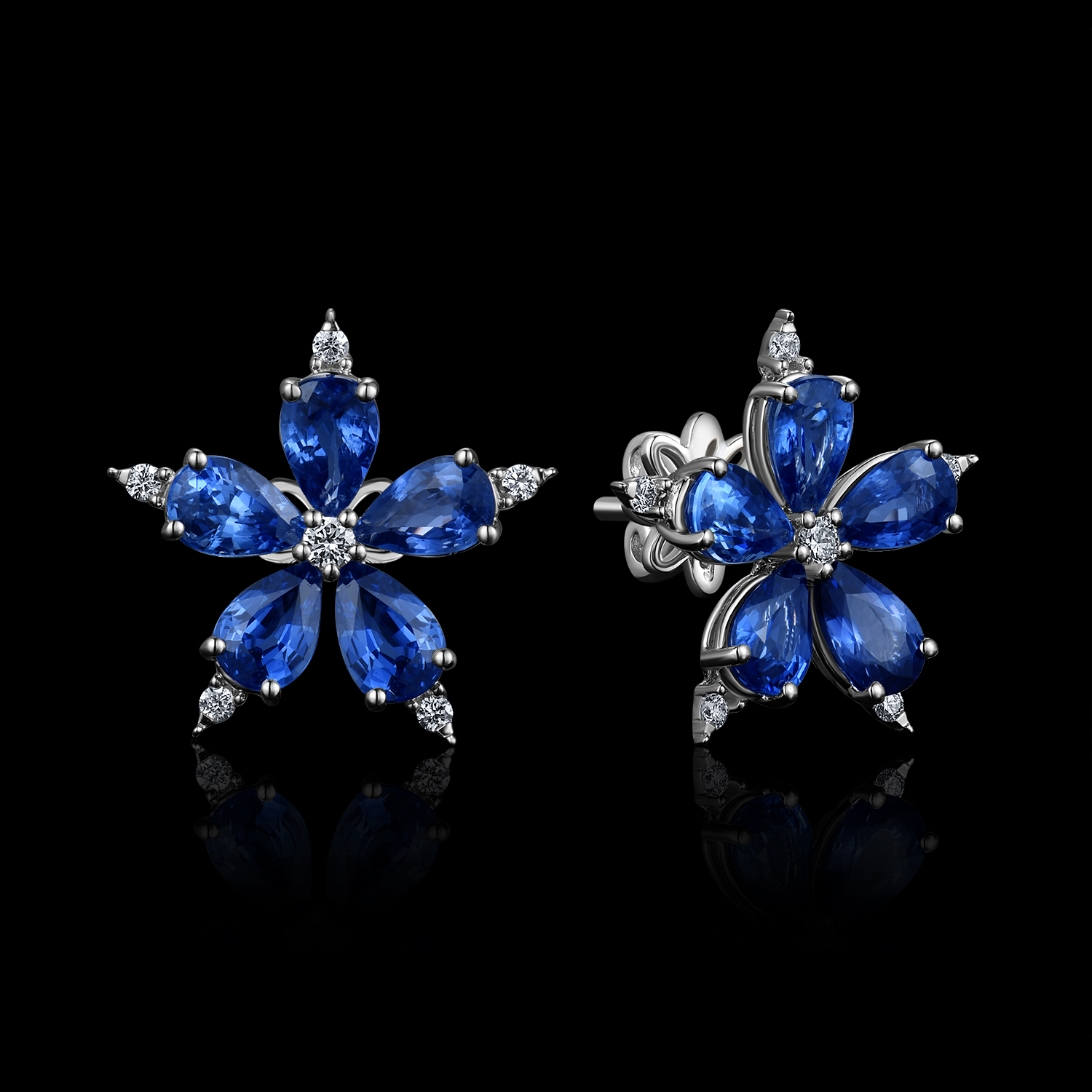 18K WHITE GOLD EARRINGS WITH DIAMONDS AND SAPPHIRE