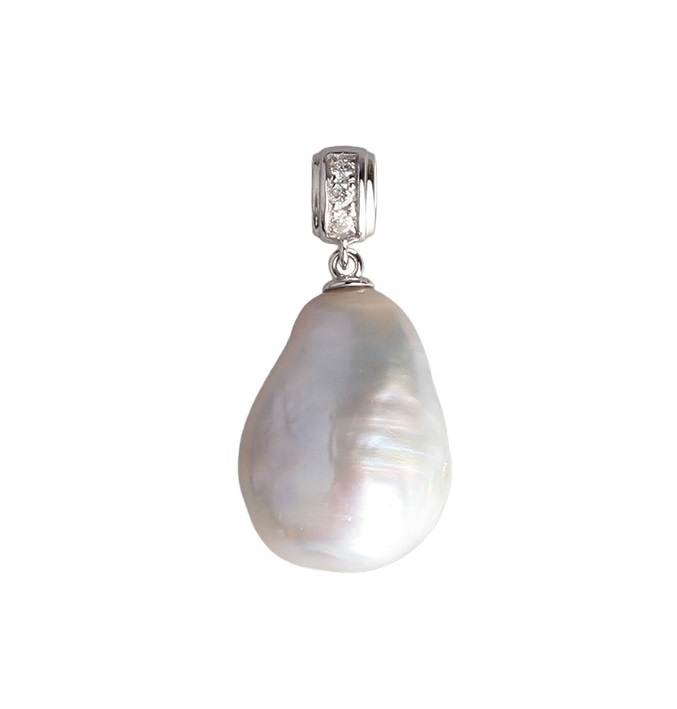 18K WHITE GOLD PENDANT WITH 13-14MM KESHI BAROQUE FRESHWATER PEARL AND DIAMONDS