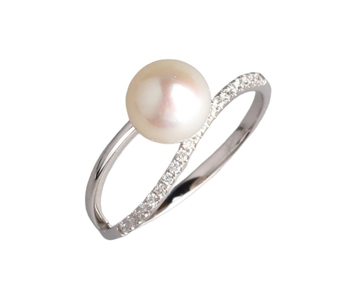 18K WHITE GOLD RING WITH 7-7.5MM ROUND SHAPE FRESHWATER PEARL AND DIAMOND