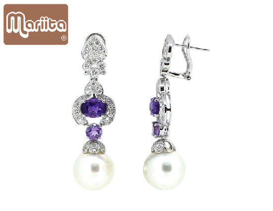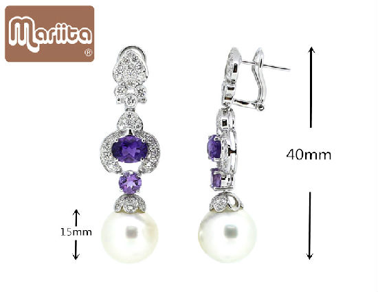 18K White Gold Amethyst, Diamond and South Sea Pearl Earring