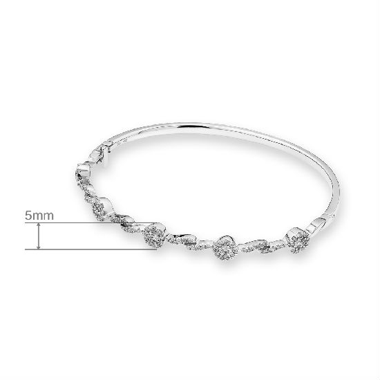 18K White Gold Cluster Diamond Accent Bangle