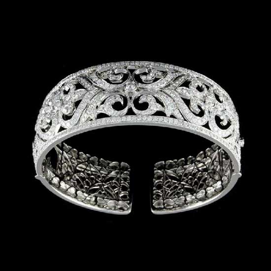 This is a diamond bangle with a luxurious and stylish design. The 18K white gold setting promises a sparkling and gorgeous effect. This 18K white gold diamond bangle is an ideal addition to complete your jewelry box.