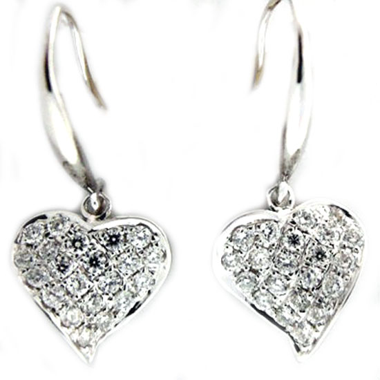 This is a pair of earrings with a romantic and elegant heart appearance. The allover dazzling diamonds accent these earrings. This pair of earrings is made of 18-karat white gold and shimmers with a high-gloss finish.
