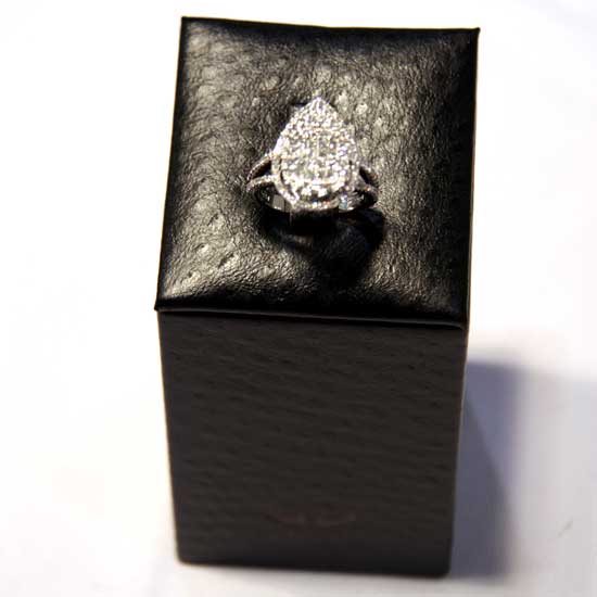 The admirable ladies' ring bestows a romantic teardrop design, which is finely sculpted with top-grade 18K fine white gold for a sparkling appearance. The whole piece reveals meticulous craftsmanship with the arrangement of 97 pieces of twinkling diamonds. This bewitching 18K white gold diamond ring is the doubtless choice for a perfect proposal.