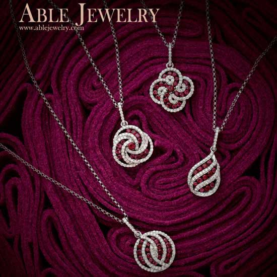 This collection of delicate pendants presents charming designs of swirls. The rounded shapes of these pendants lend a feminine touch to the wearer. The use of fine rubies and diamond makes it an exquisite choice of gift.