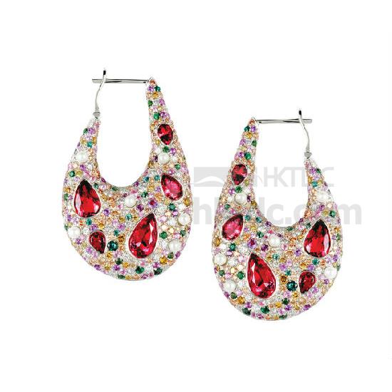 Words fail to describe the grandeur and opulence of this pair of earrings. While the surface is meticulously paved with an assembly of colourful gemstones, the splendour of the jewels is enhanced by the bigger rubelites and pink tourmalines. With a classy design, the pieces radiate an intriguing beauty as thousands of untold stories and tales are hidden behind.